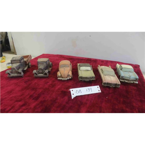 6 Chalkware Style Vehicles - Largest is 7'' x 3'' x 3'' H 139 - 6 Chalkware Style Vehicles - Largest is 7'' x 3'' x 3'' H