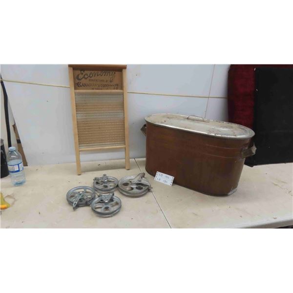 Washboard, Wash Tub, Pulleys130 - Washboard, Wash Tub, Pulleys