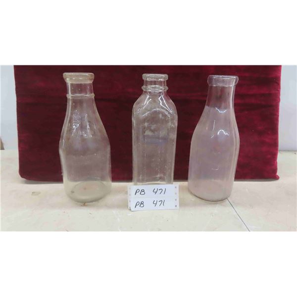 3 Glass Milk Bottles 471 - 3 Glass Milk Bottles