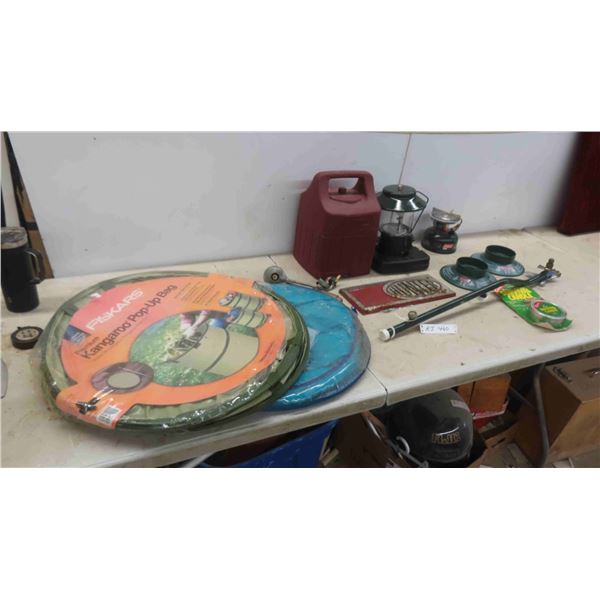 2 Coleman Lantern Bases with Case , 2 Kangaroo Pop Up Bags, Hunter Steel Plaque, Fiskars Pruning Pole