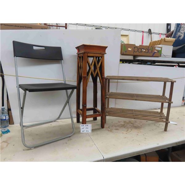 Fold Up Chair, Bamboo Style Plant Stand 9'' x 9'' x 30'' H , 3 Tier Shelf 25'' x 10'' x 19''