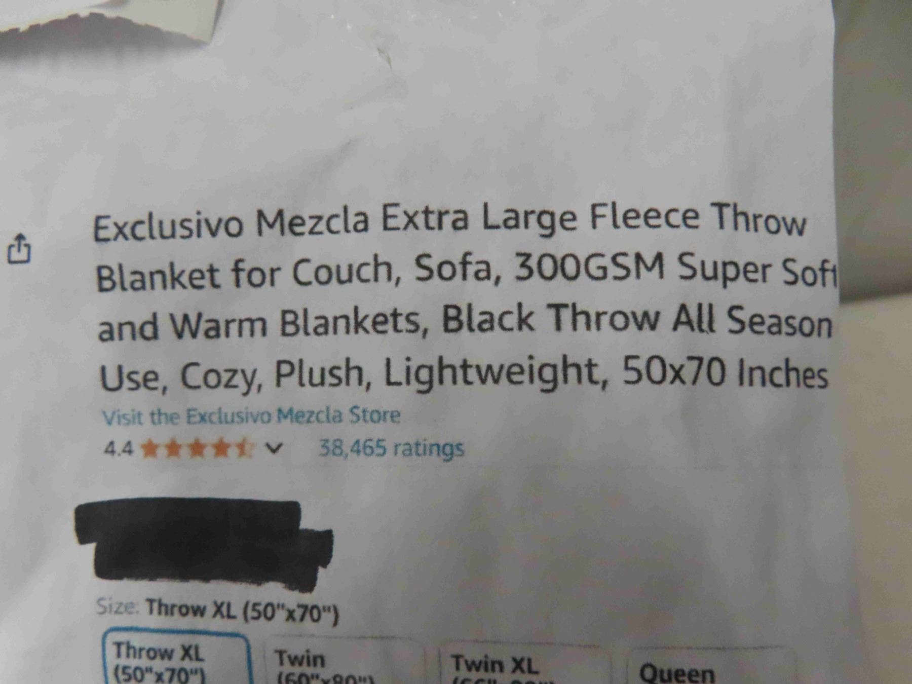 Exclusivo Mezcla Extra Large Fleece Throw Blanket for Couch, Sofa, 300GSM Super Soft and Warm Blankets, Black Throw All Season Use, Cozy, Plush, Lightweight, 50x70 Inches - New or Store Return