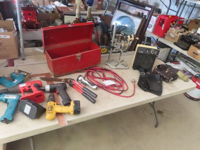 Extension Cord, Electric Heater, Power Drill on Stand, Tool Bag, Metal Tool Box with ODdsnEnds of Wr