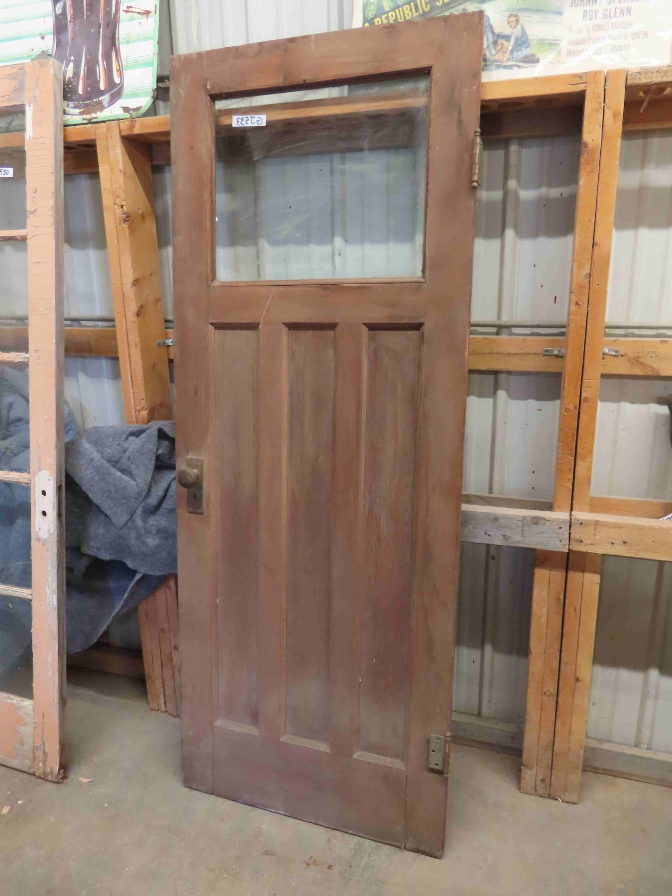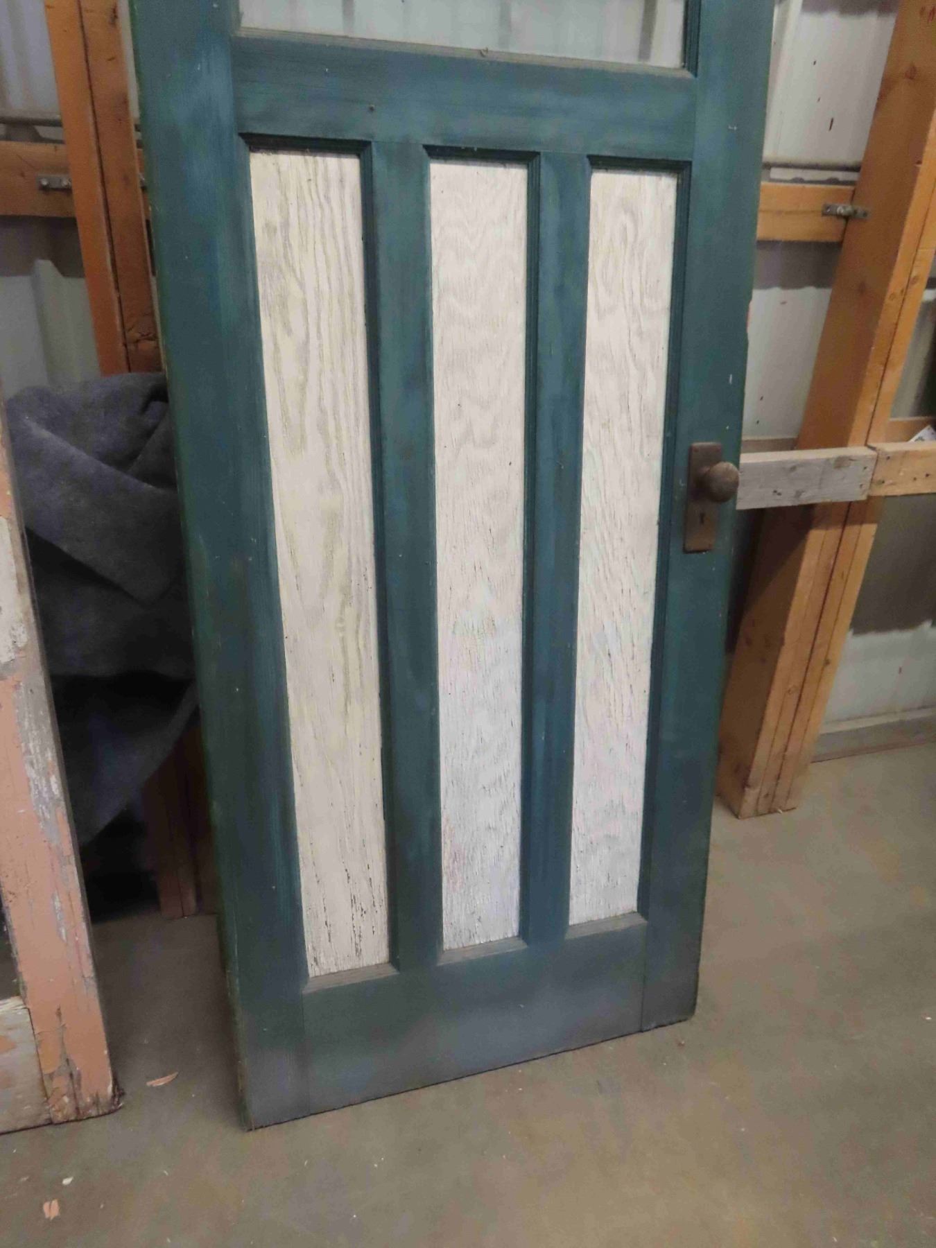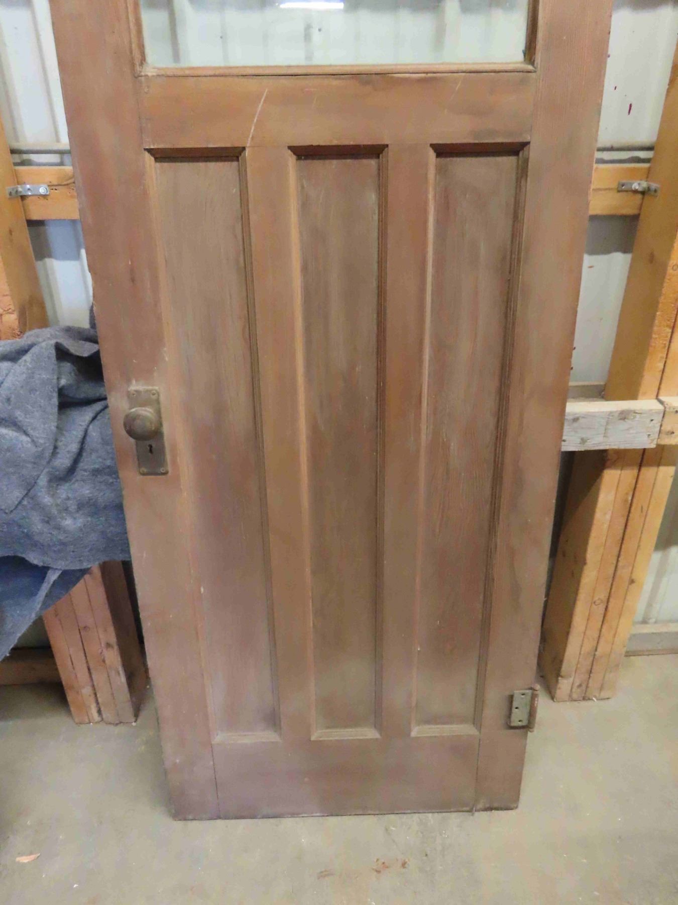 Exterior Wooden Door with Window - Mission Style - with Door Handle + Hinges 30" x 78"