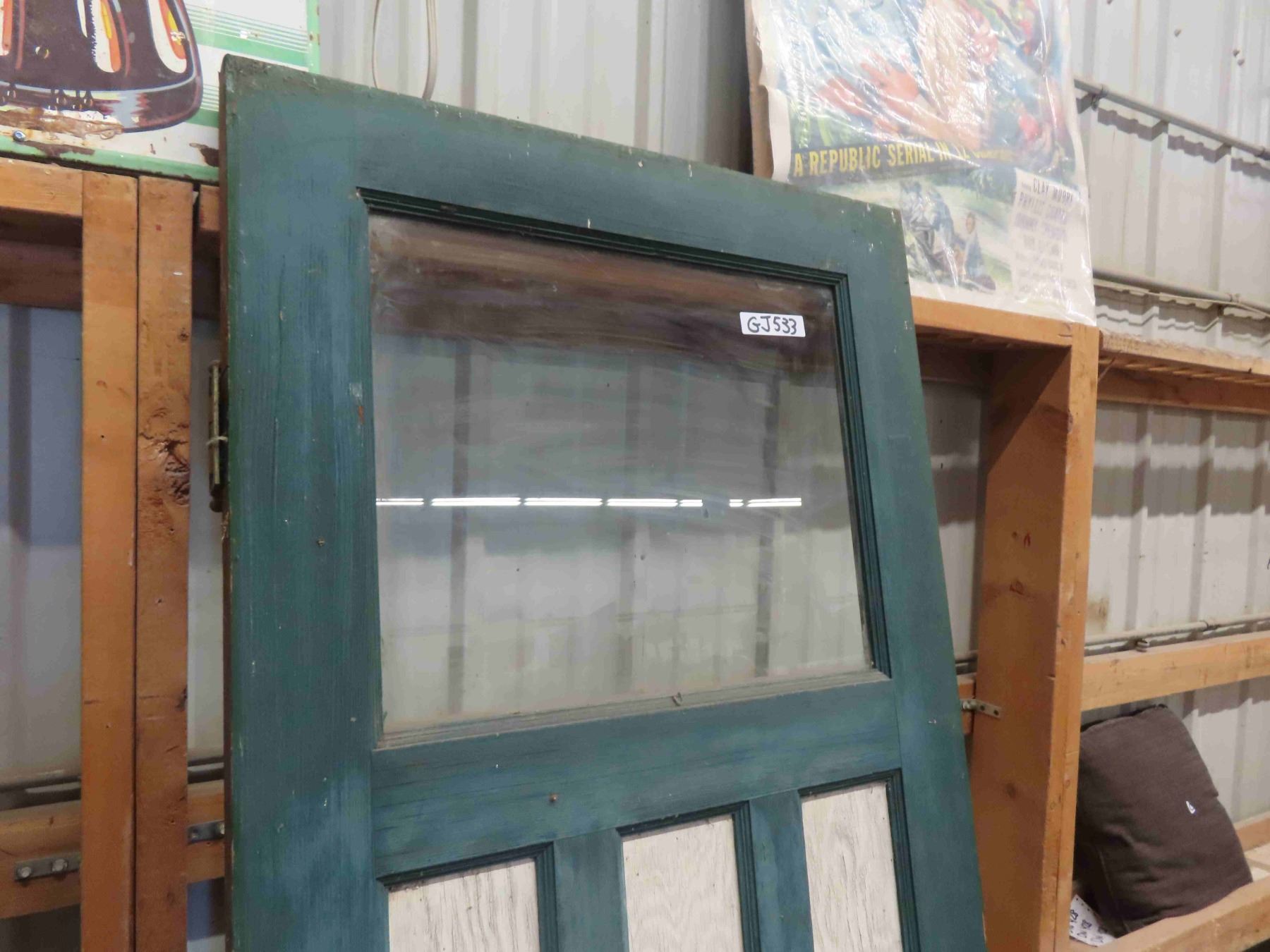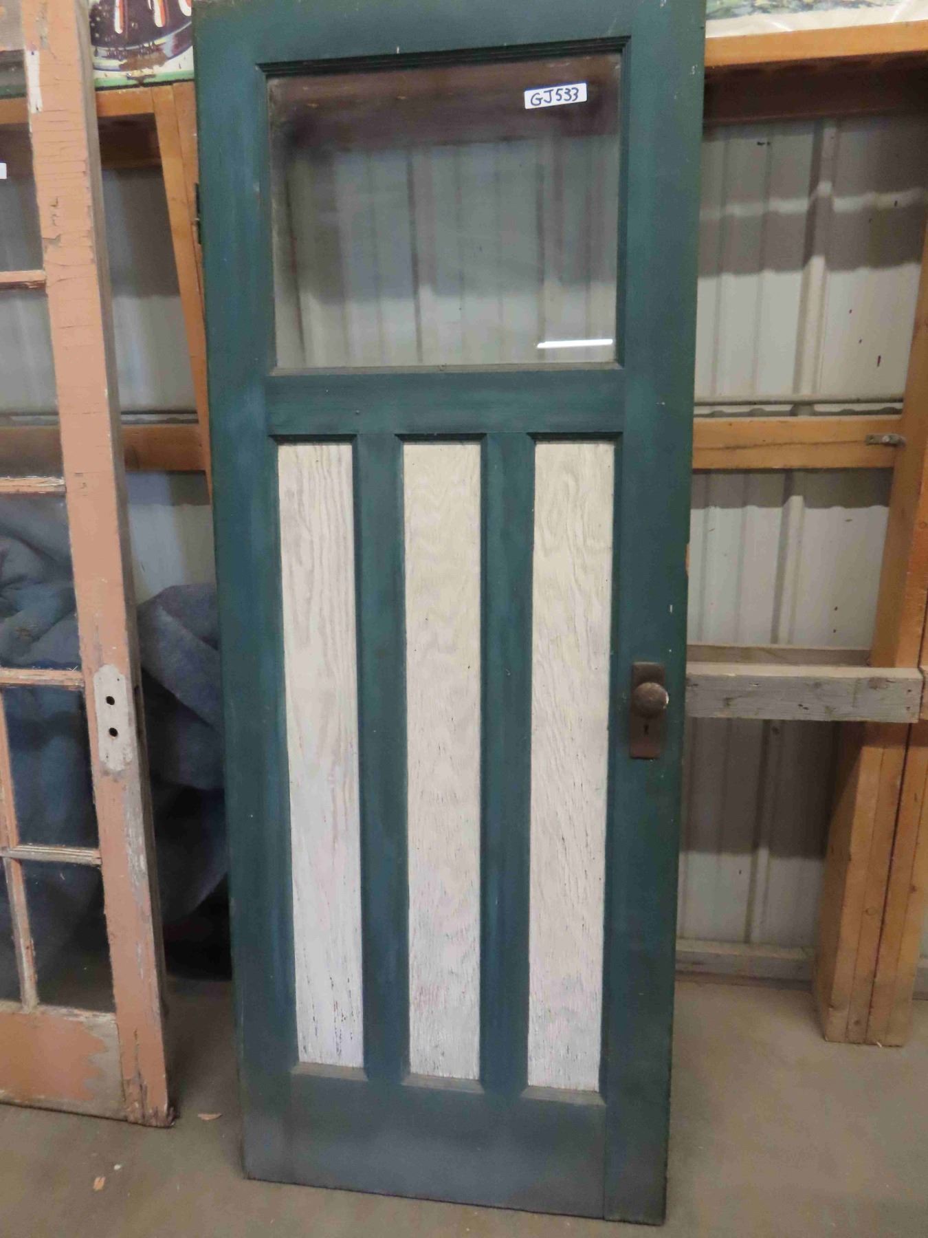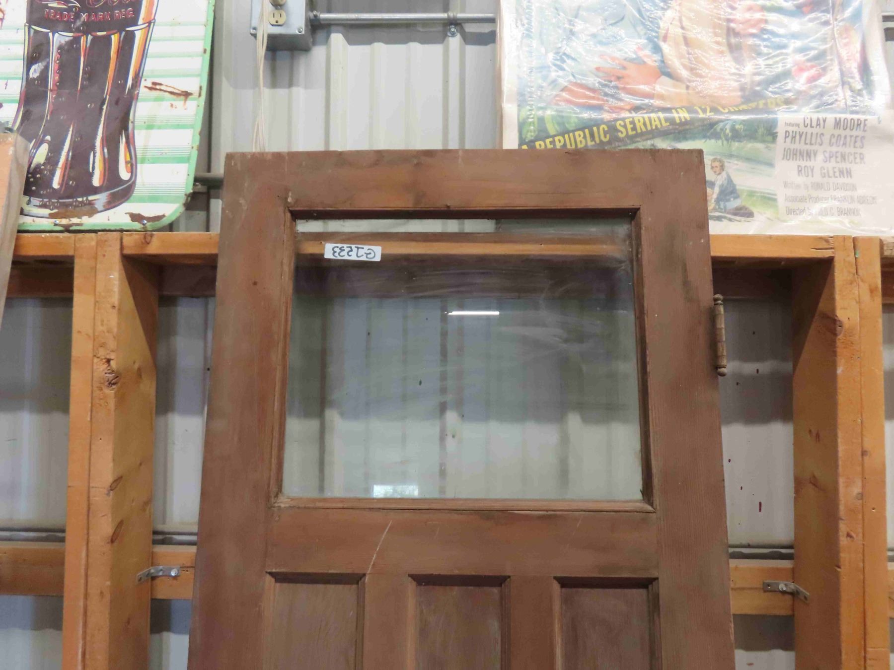 Exterior Wooden Door with Window - Mission Style - with Door Handle + Hinges 30" x 78"