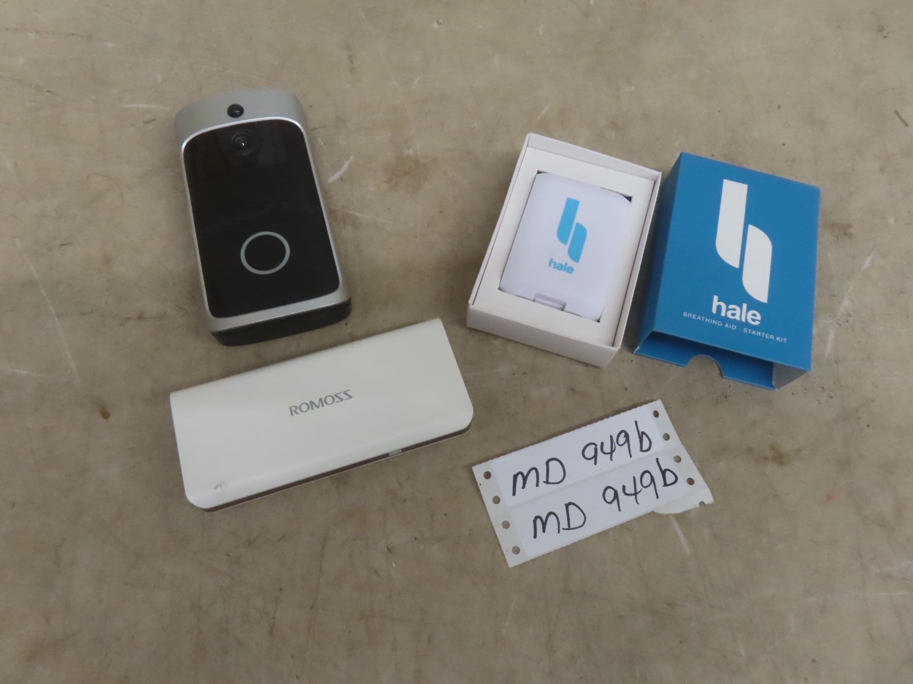 Romoss External Battery Pack, Wireless Doorbell Camera, and Fire-Breathing Acid Starting Kit (Unused)