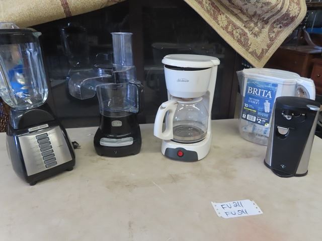 (FU) B&D Blender, Wolfgang Puck Food Processor, Sunbeam Coffee Maker, New Brita Water & Elec Can Opener