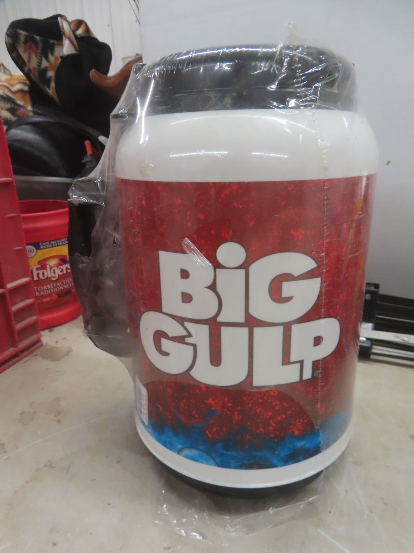 Factory-Sealed Giant Big Gulp Mug, Balloon Buddy Electric Inflator, Master Lock, Maple Leafs Chopper, and More