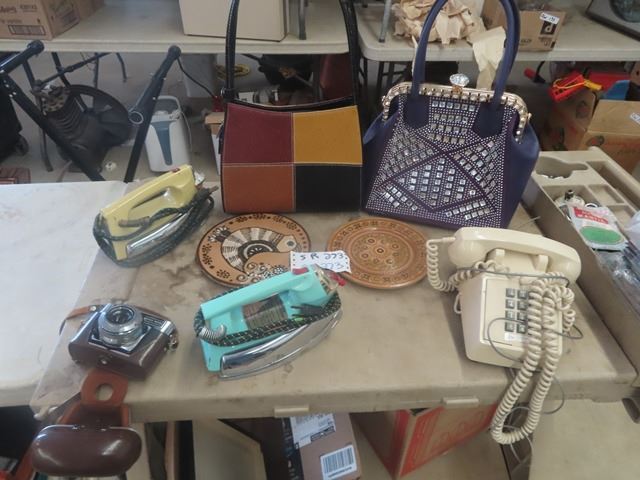Fancy Hand Bags, Trivets, Zeiss Ikon Camera Vintage Electric Iron