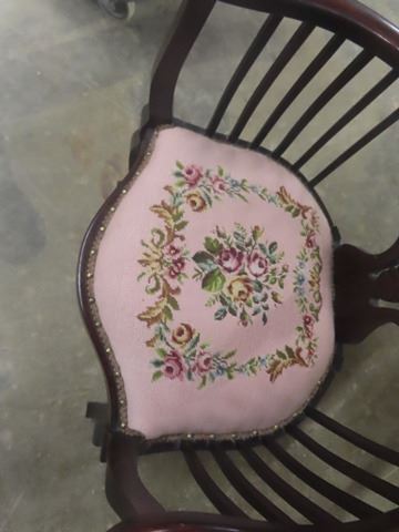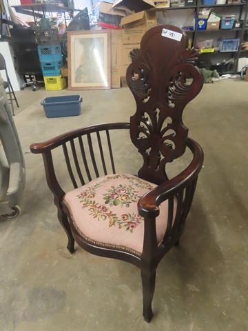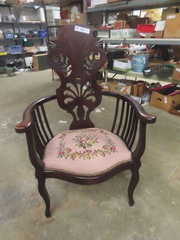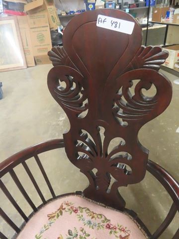 Fancy Mahogany Chair with Carved Back & Petti Point Seat