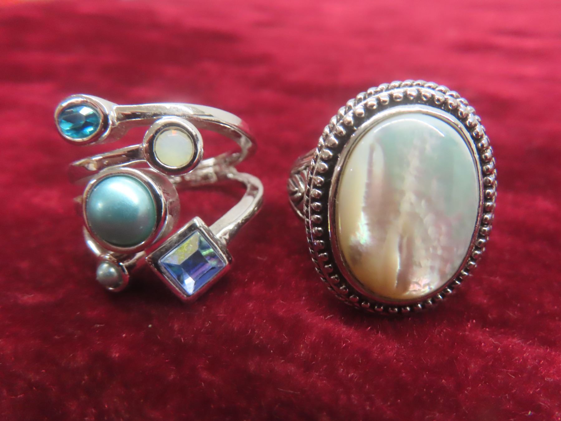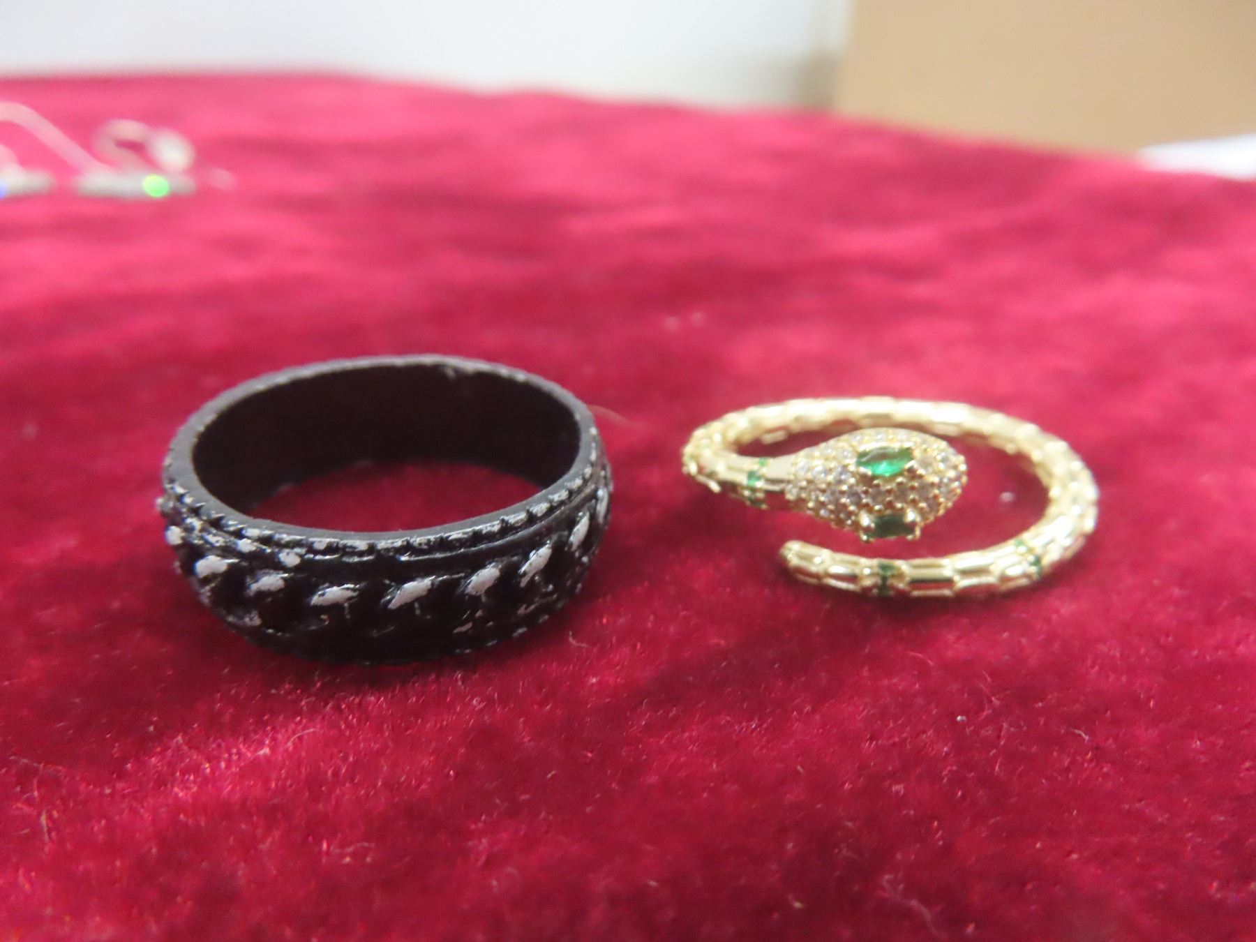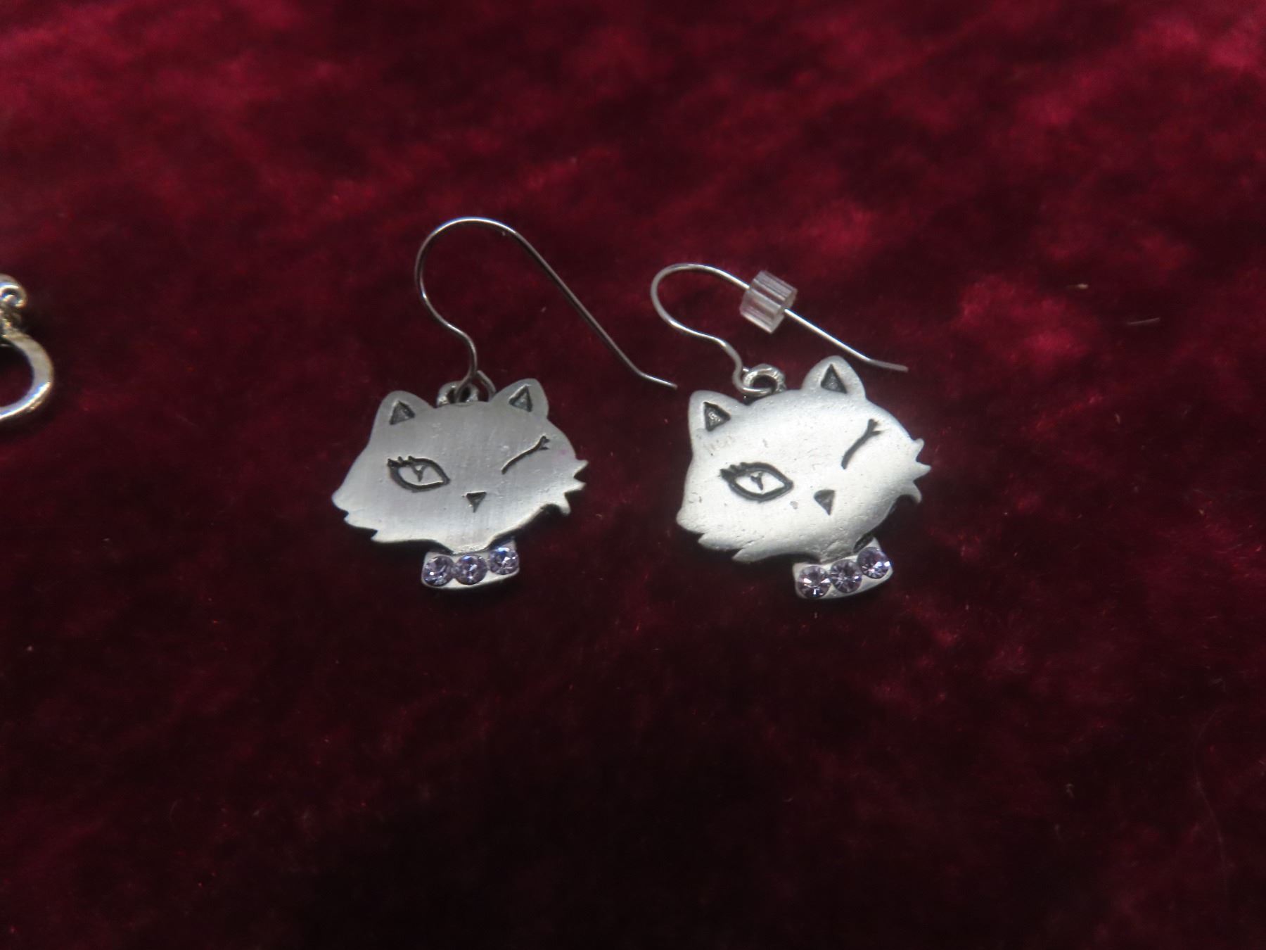 Fashion Jewelry: Five Rings (Sizes 9 and 10) Cat Earrings, Brooch, and Necklace