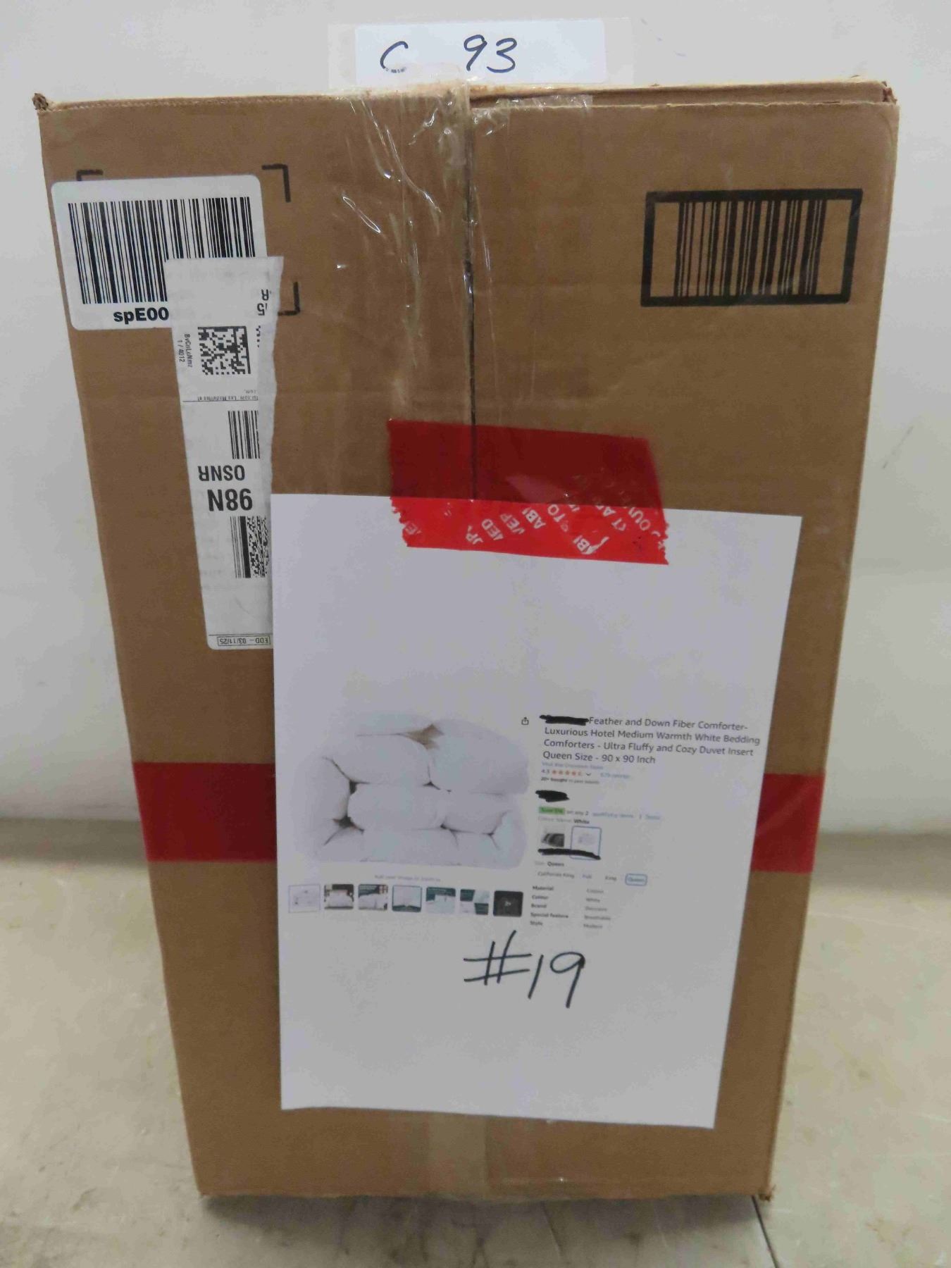 Feather and Down Fiber Comforter Luxurious Hotel Medium Warmth White Bedding Comforters , Ultra Fluffy and Cozy Duvet Insert Queen Size 90'' x 90'' - New or Store Return