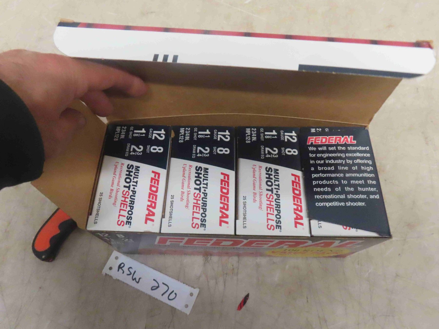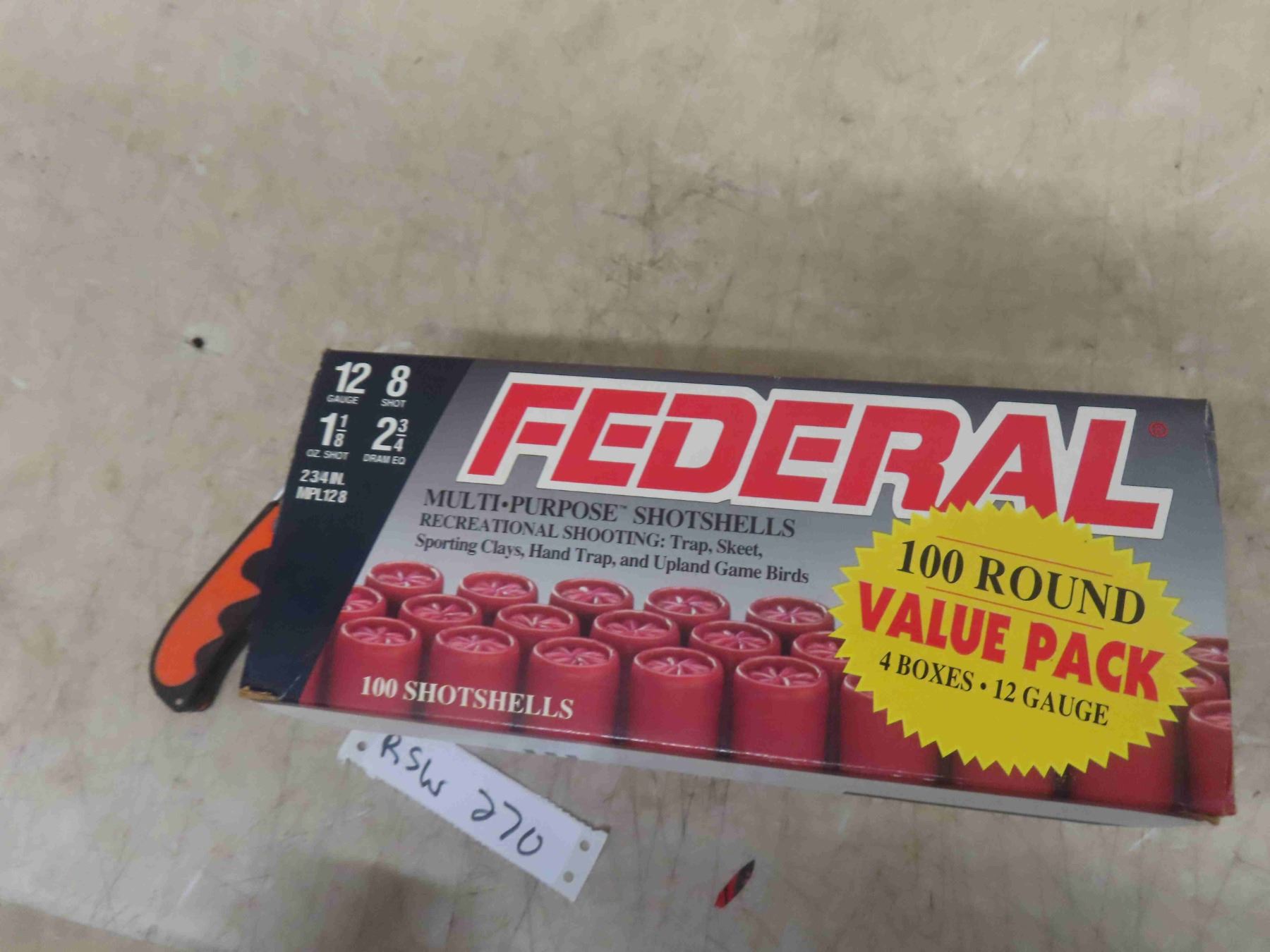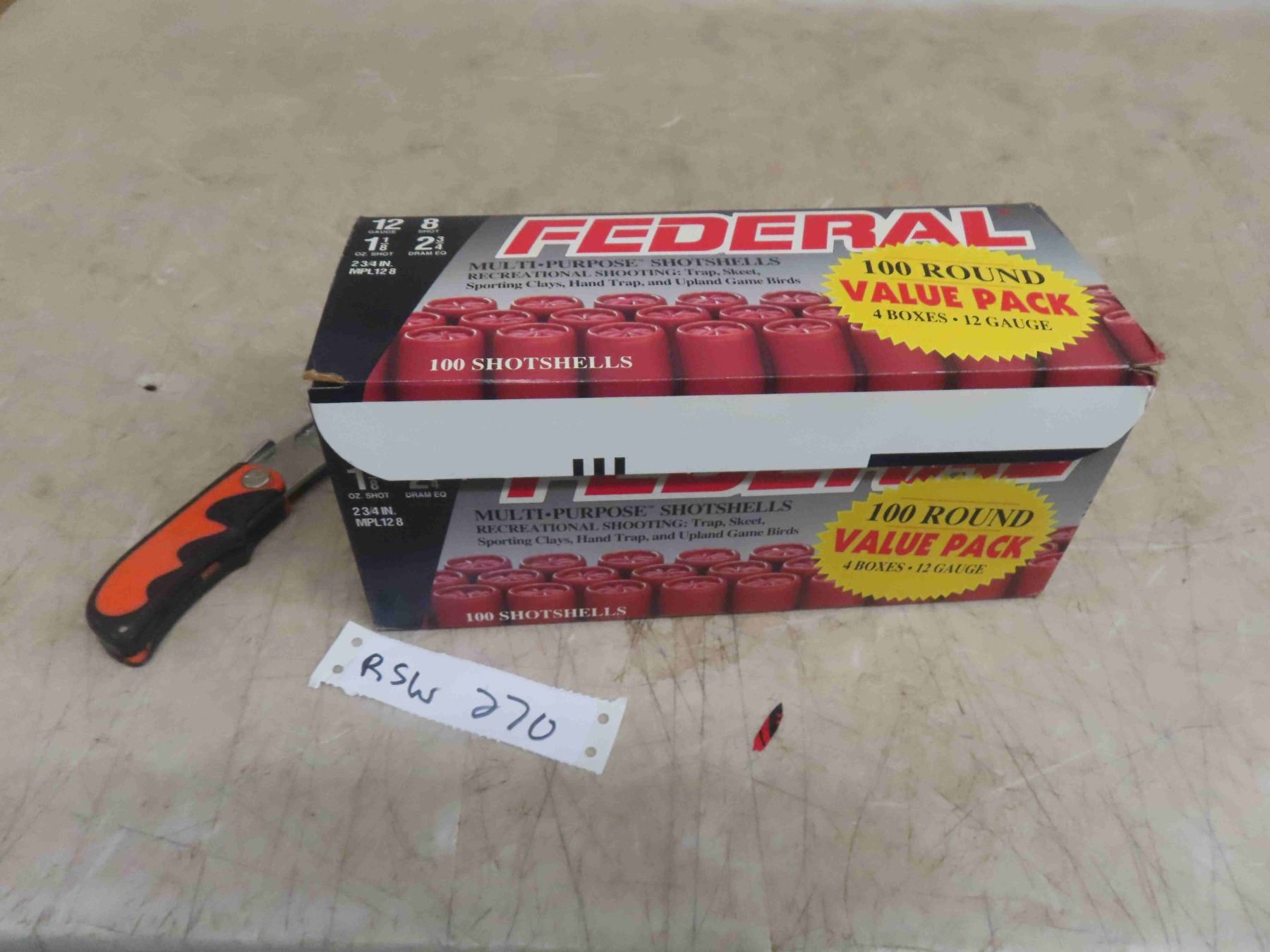 Federal 12 Gauge 2 3/4" Ammo 100 Rounds **** Must Have Pal, MUST PRESENT PAL WHEN PAYING INVOICE. WE DO NOT AND WILL NOT SHIP AMMO. IF YOU WIN AMMO YOU WILL BE RESPONSIBLE TO PAY FOR IT AND RESELL IT UNDER YOUR OWN CONSIGNMENT.