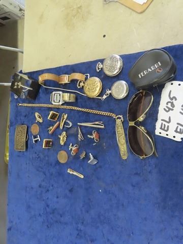 Ferrai Glasses, Brass Utility Knife, Cuff Links, Watches, & Belt Buckles & More