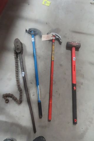 Fiber Glass Handled Sledge Hammer, 2 Pipe Benders, Chain Wrench