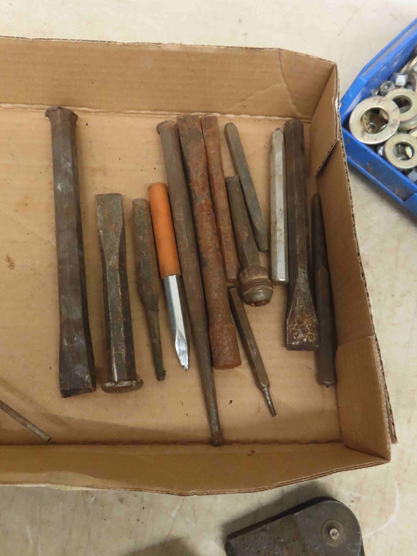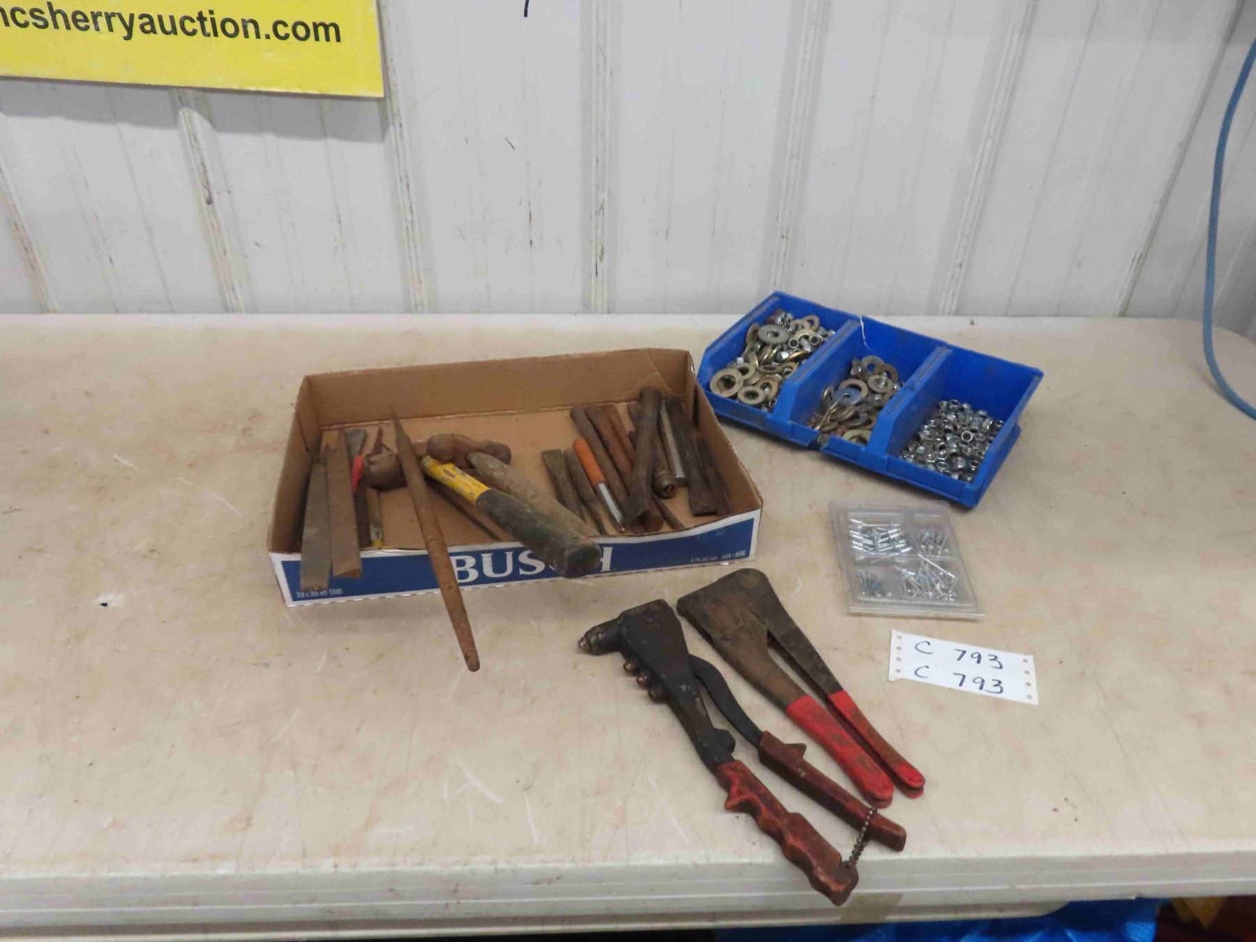 Files, Pop Rivots and Gun, Chisels, Various Washers and Nuts