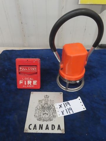 Fire Alarm Switch, Starlight 222 Railway Lantern & Embossed Metal Canada Sign