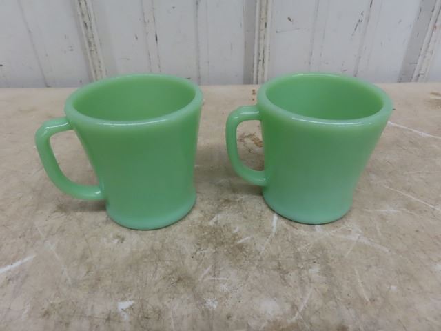Fire King Jadeite Pitcher, 2 Coffee Mugs, Tea Cup + Saucer,