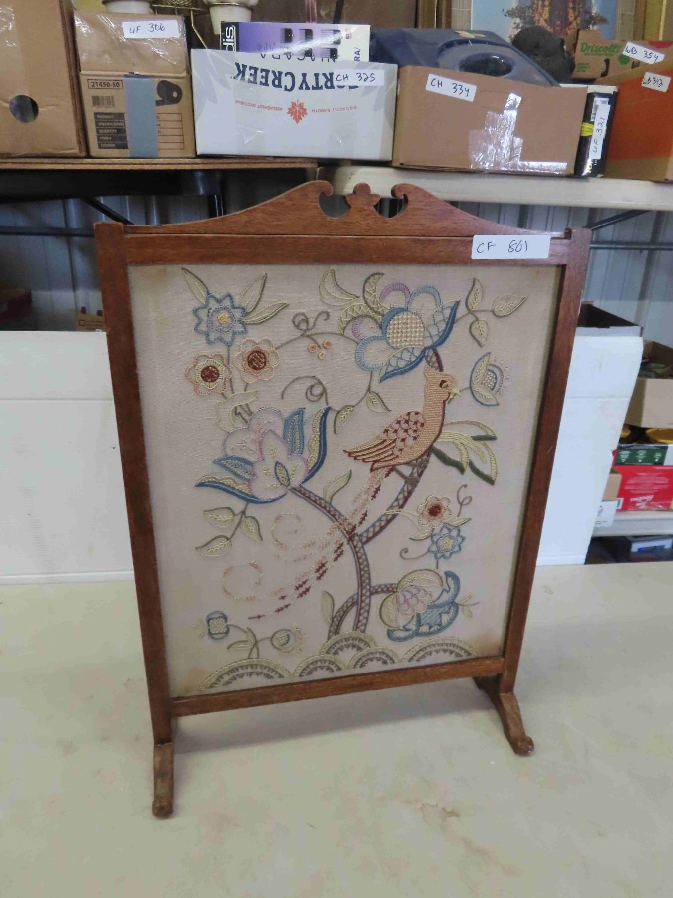 Fire Place Guard with Oak Frame 28'' x 20'' with Embroidering