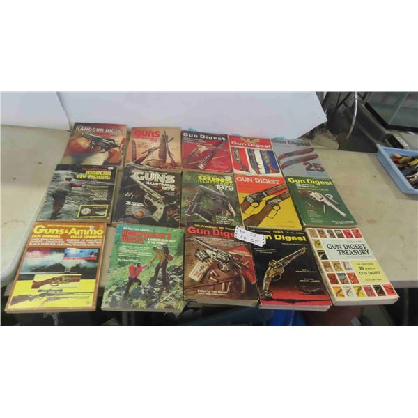 (15) Gun Books: Gun Digest, Gun Illustrated, Guns and Ammo, Fly Fish, Backpacks Digest