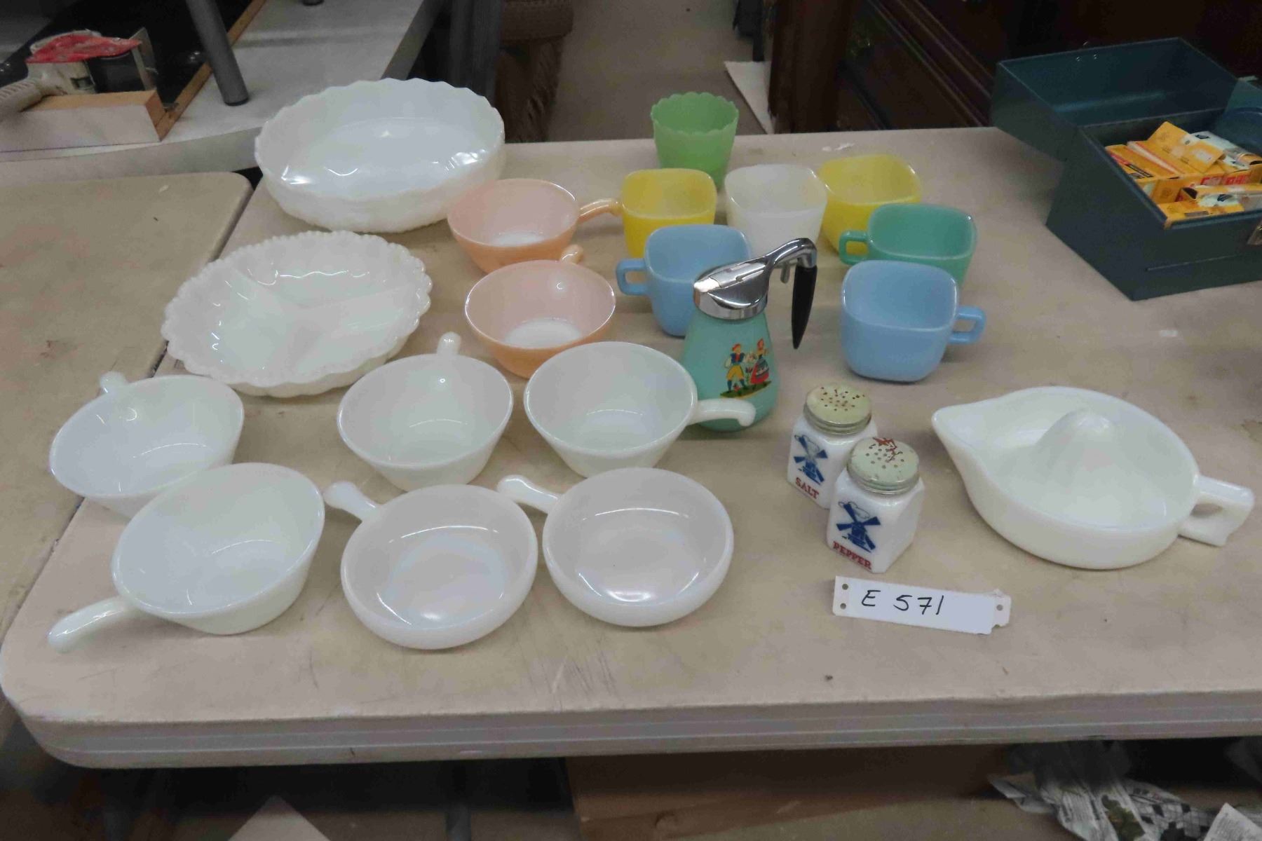 Fireking, Milk Glass Salt & Pepper Shakers, Sun Kissed Juicer