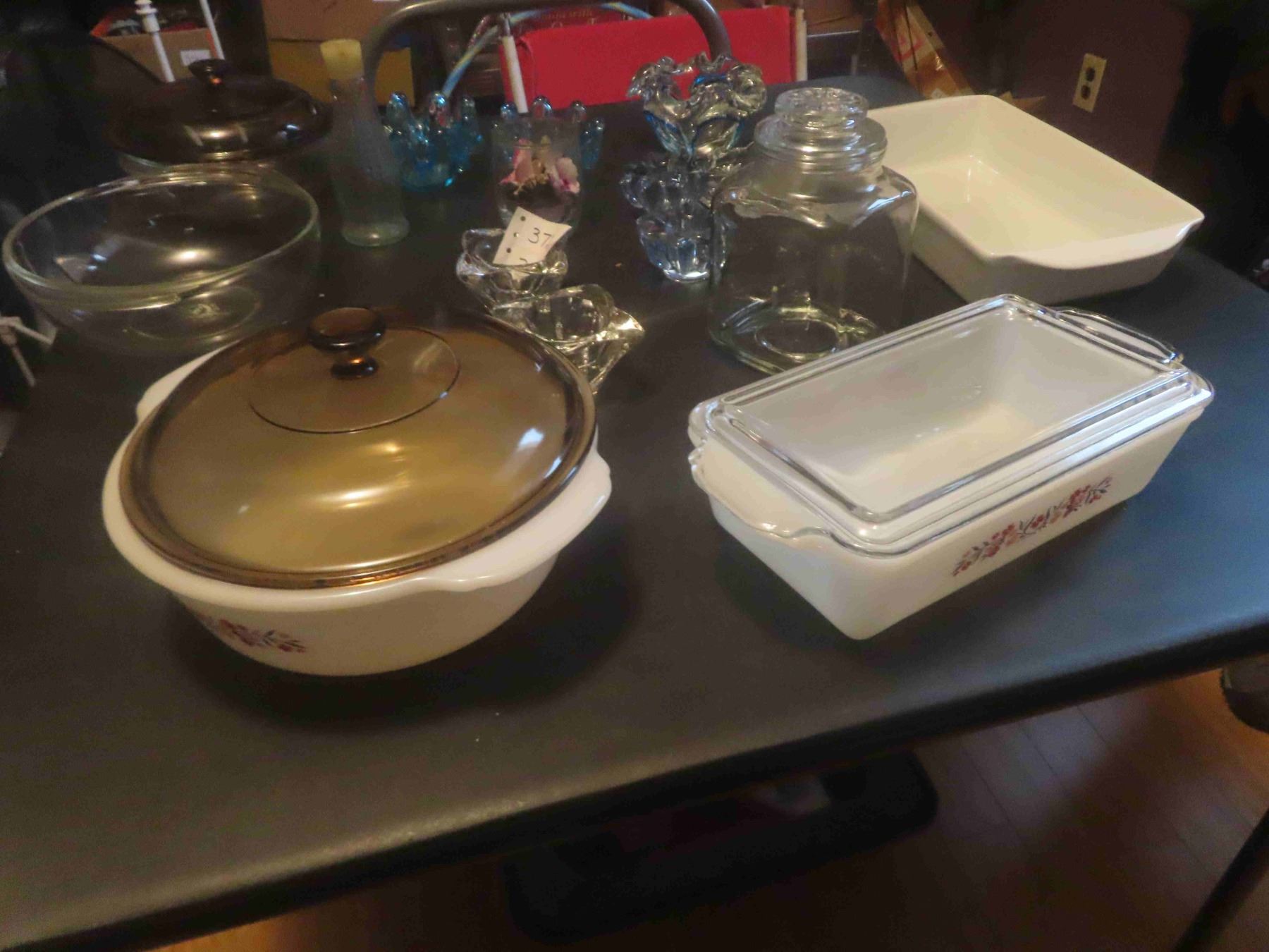 Fireking and Pyrex Casserole Dishes, Canister, Candle Stick Holders & More