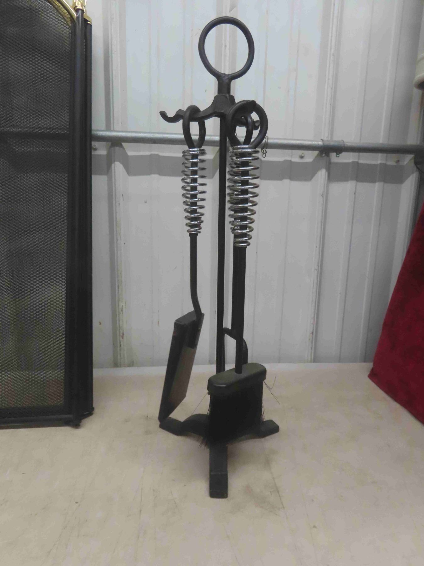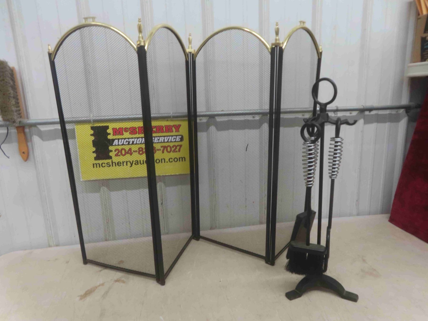 Fireplace 4 Panel Fire Screen 52'' x 32 1/2'' , 3 Piece Tool Set with Stand