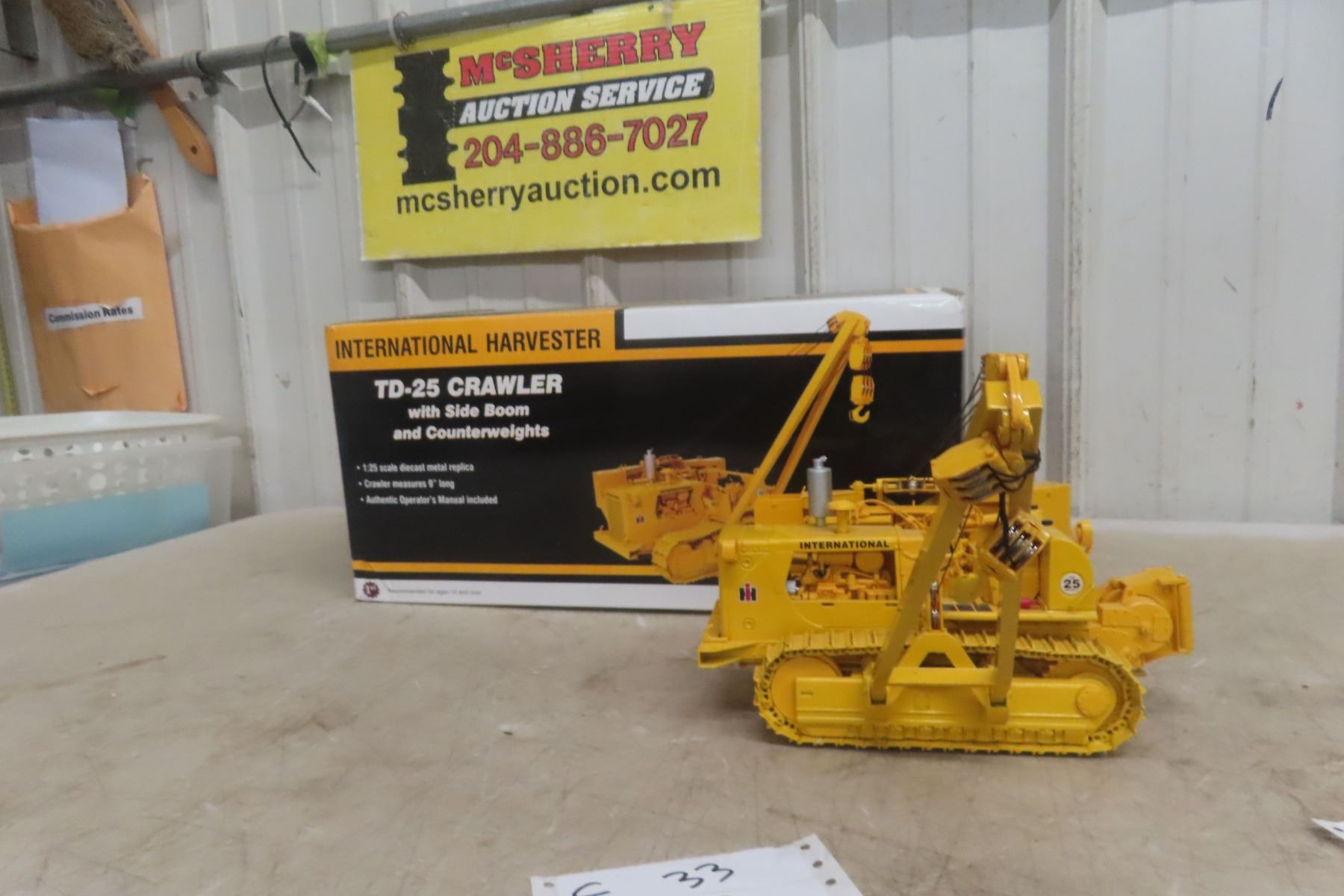 First Gear Construction Pioneer International TD 25 Crawler with Side Boom and Counterweight 1/25 Scale Die Cast in Box