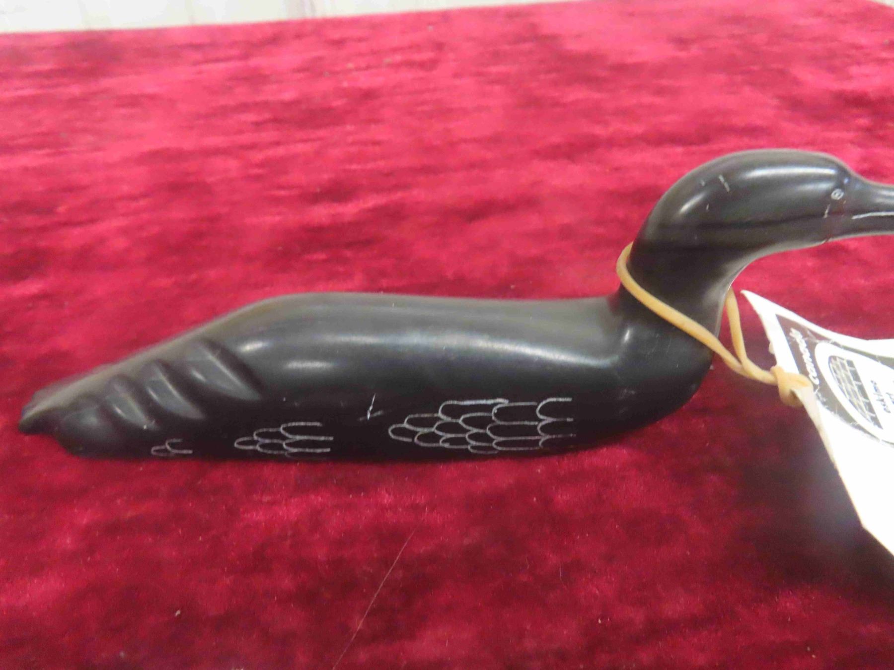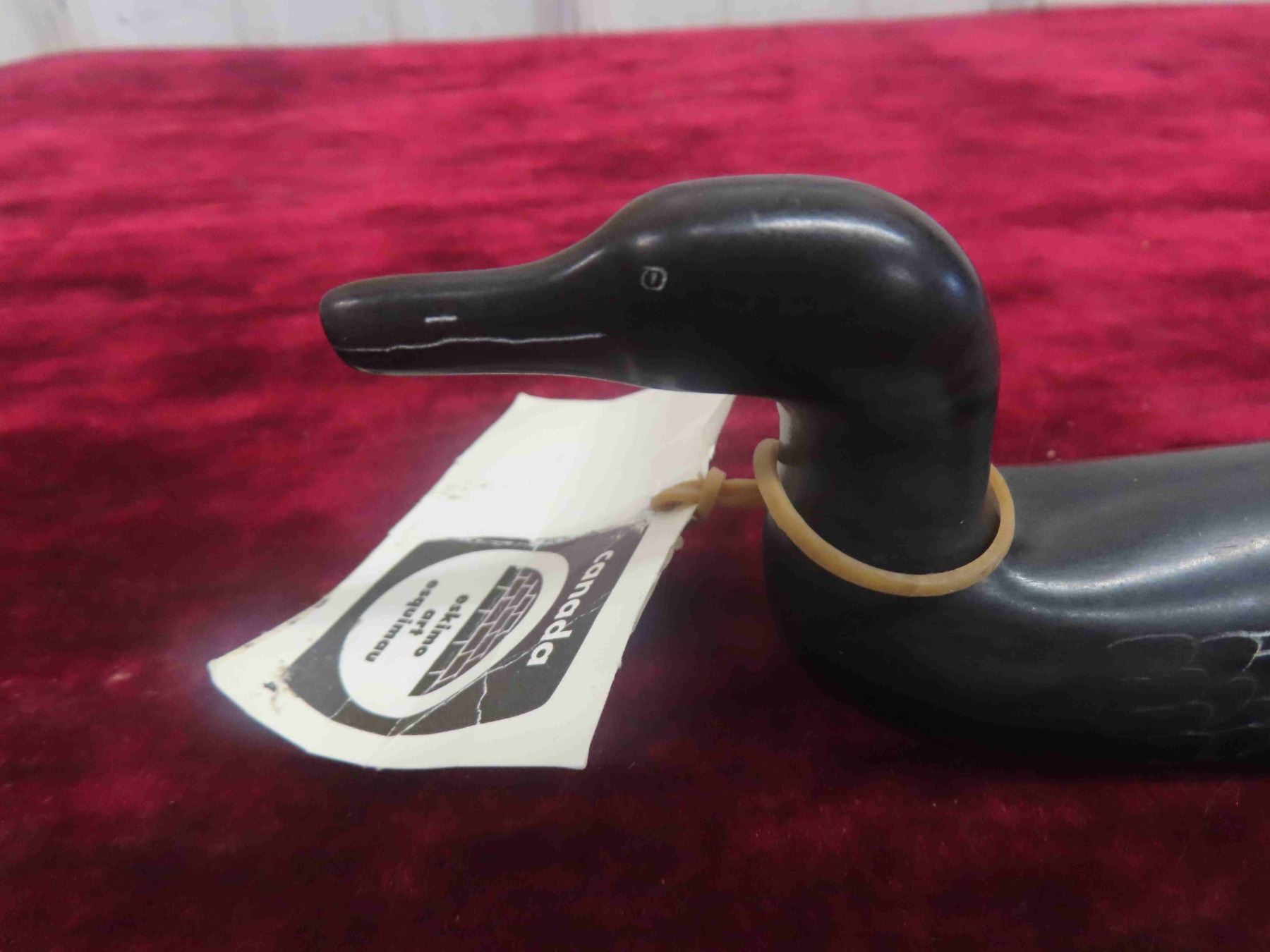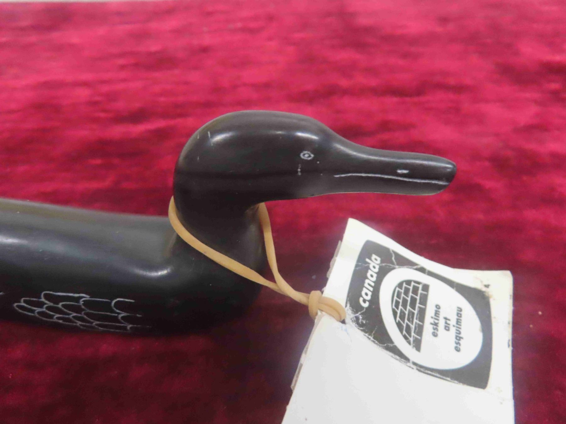 First Nations Inuit Bird Soapstone Carving. Stickered and Tagged. Signed. 7 1/2'' Across.