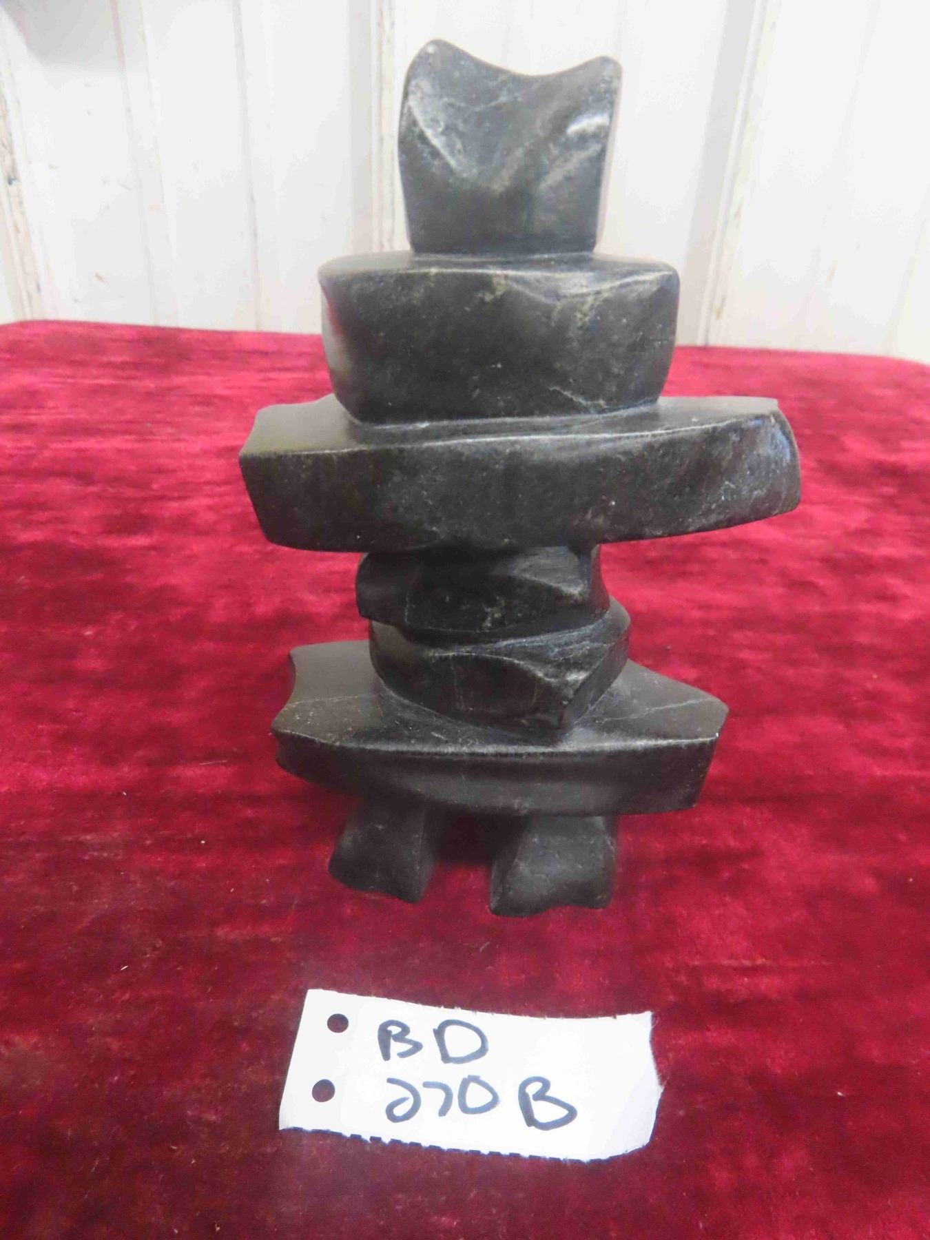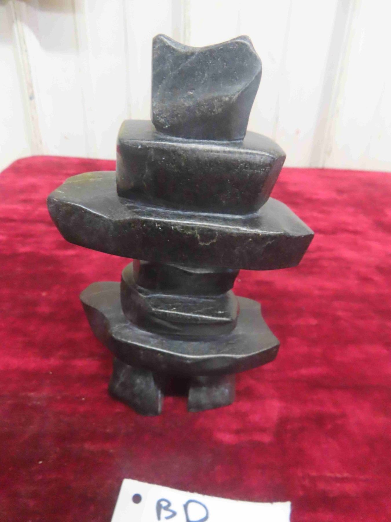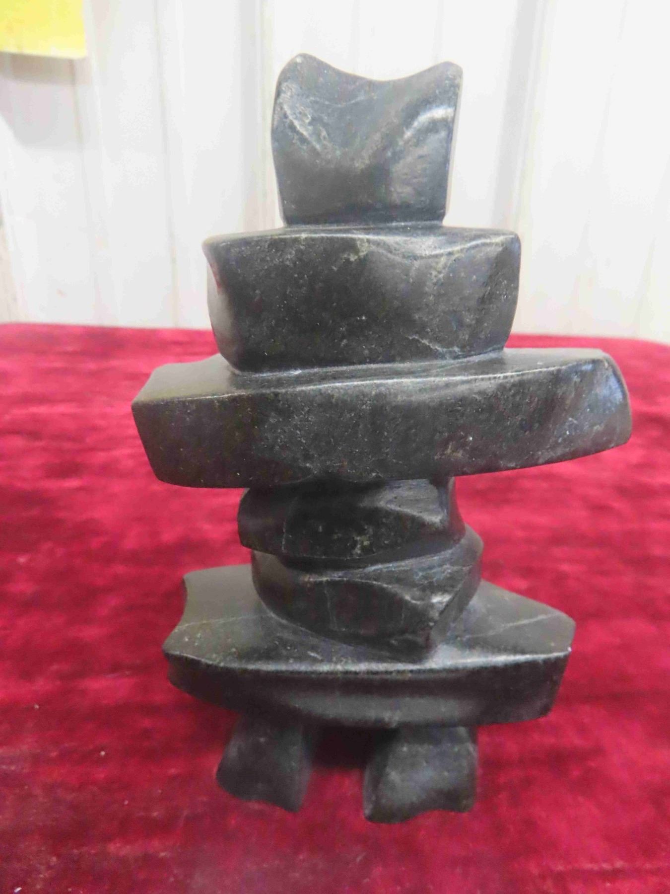 First Nations Inuit Inukshuk Soapstone Carving from Cape Dorset, Signed. 6'' Tall