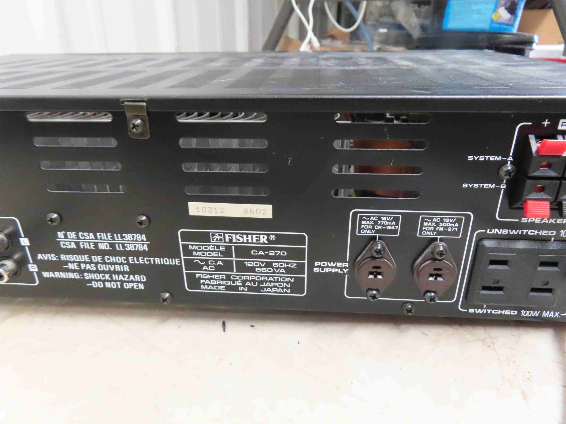 Fisher CA-270 Integrated Amplifier - Powers Up, Toshiba DVD Player with Remote,