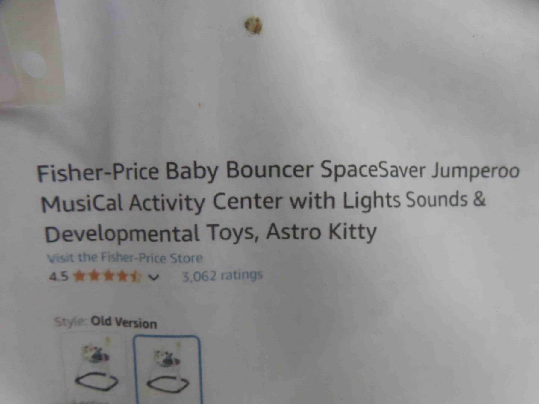 Fisher-Price Baby Bouncer SpaceSaver Jumperoo MusiCal Activity Center with Lights Sounds & Developmental Toys, Astro Kitty - New or Store Return