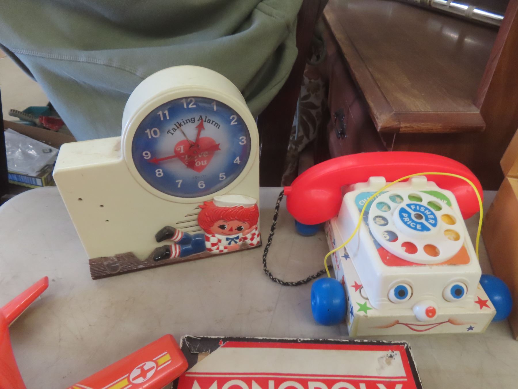 Fisher Price Phone, McDonalds Toys, Monopoly, Talking Alarm + More