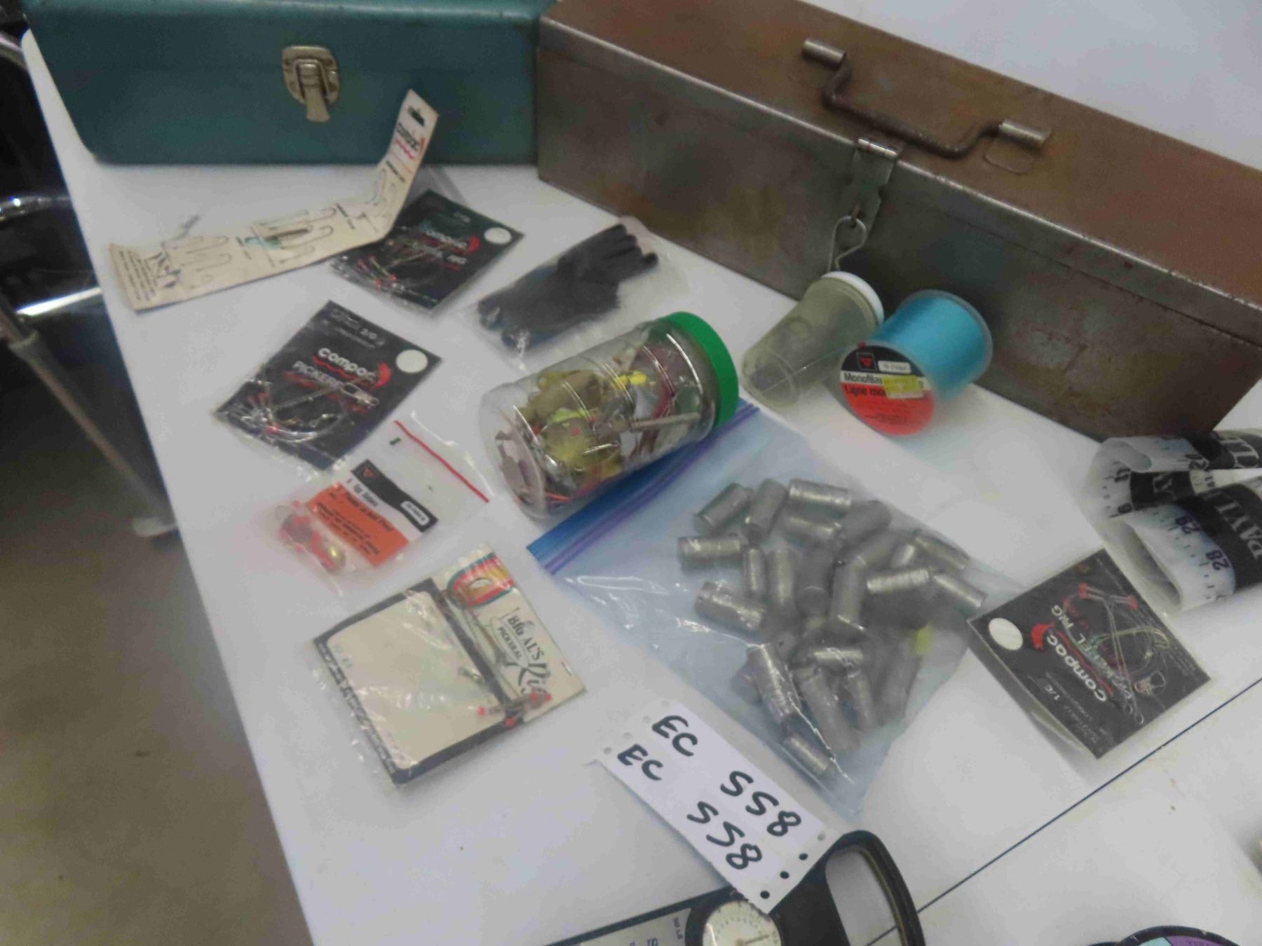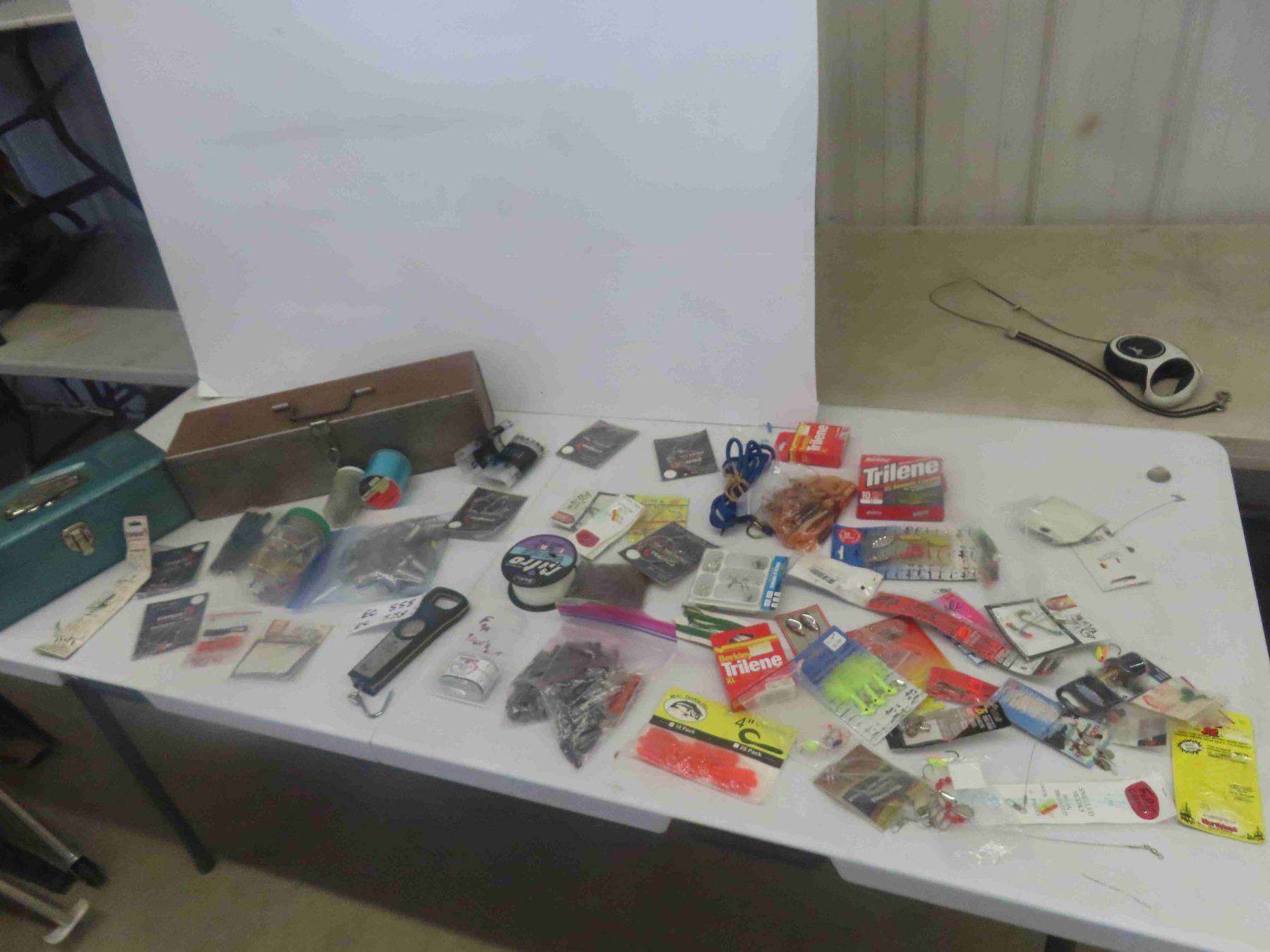 Fishing Box with Lures, Jigs, Weights, Hooks, Line & More