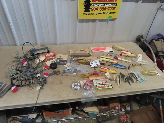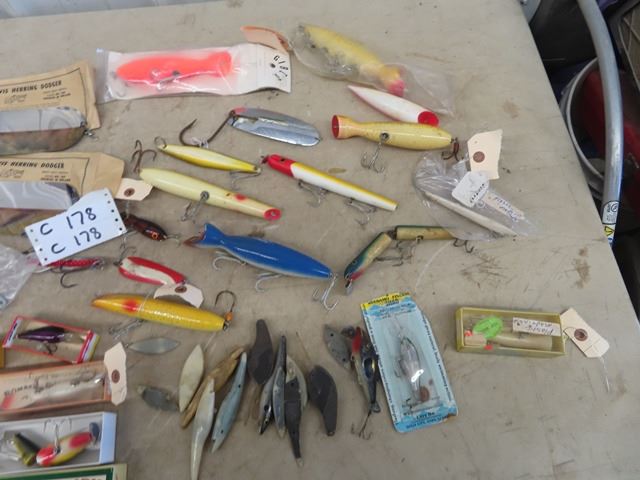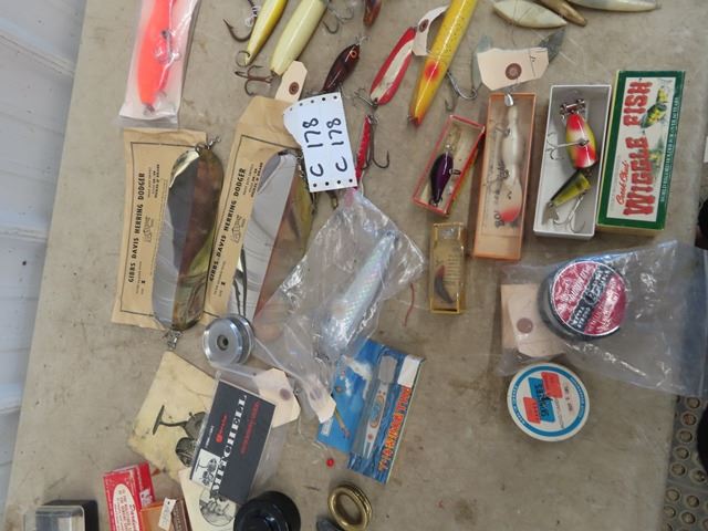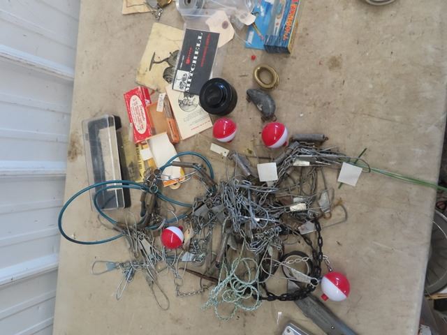 Fishing Lures- Vintage & Modern - Some in Pkgs Floats, Chain Fish Locks, & Fishing Line