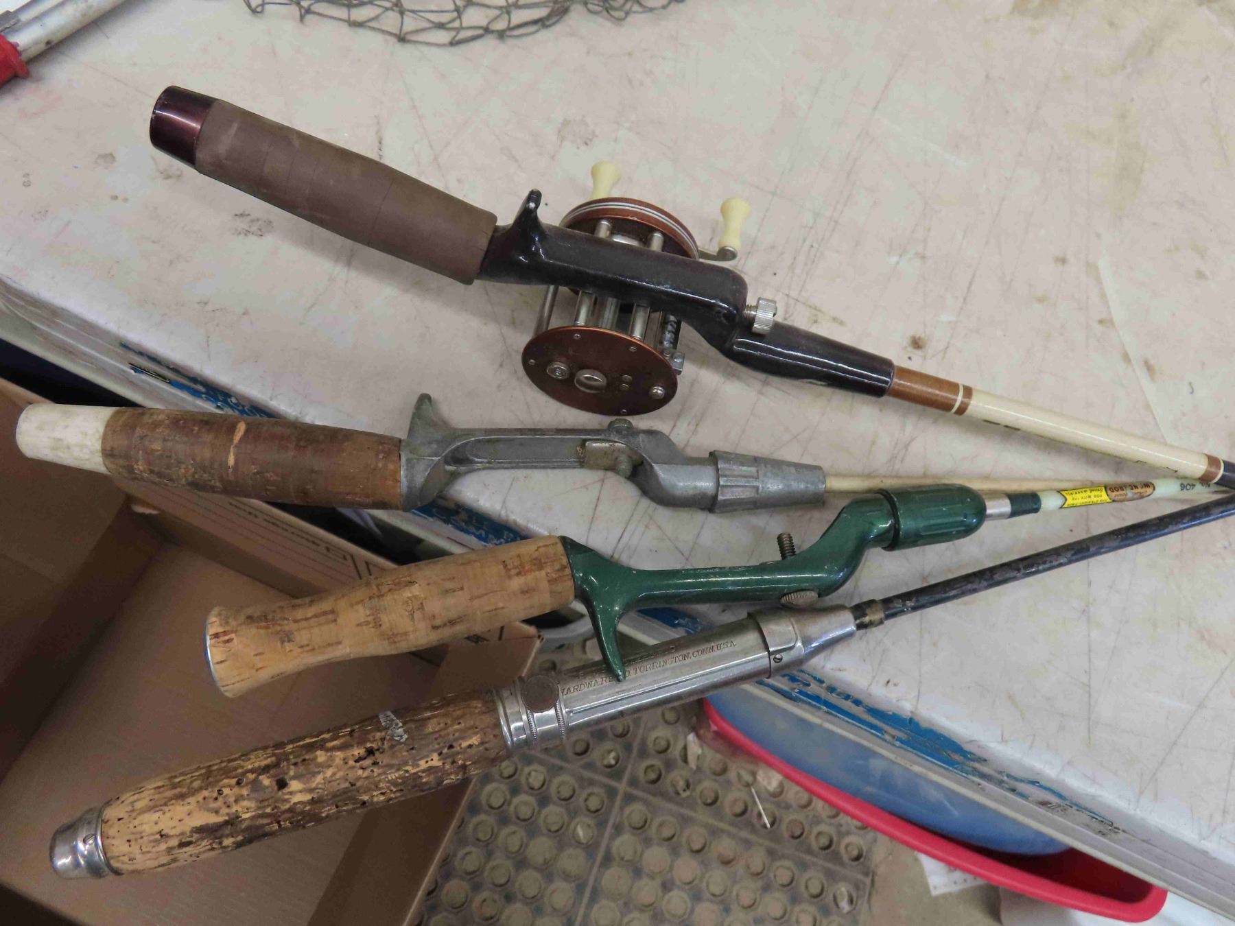 Fishing Package: 4 Rods, 1 Reel , 2 Nets (1 Vintage) , Minnow Keeper,
