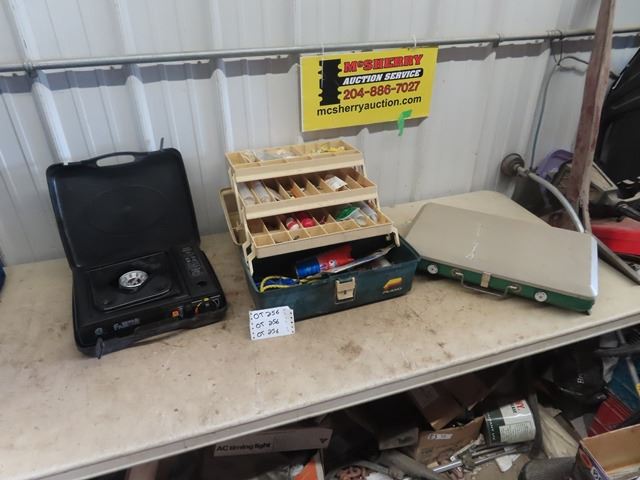 Fishing Rackle Box - 1/2 Full, 2 Gas Camping Stoves