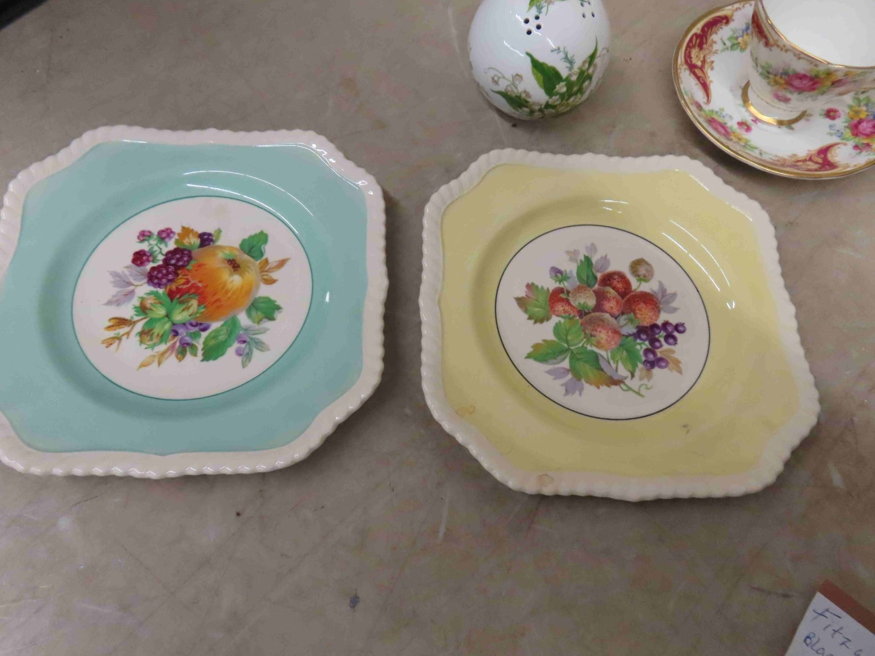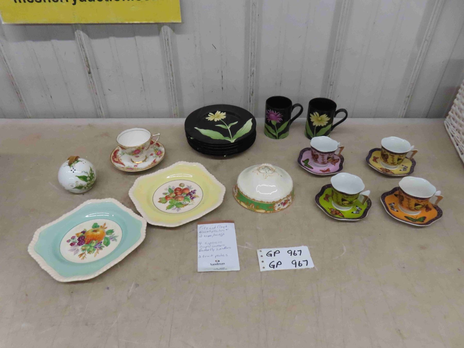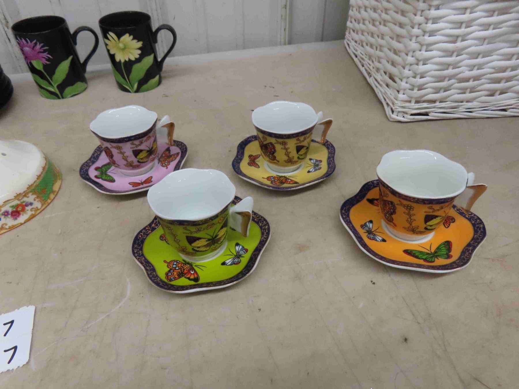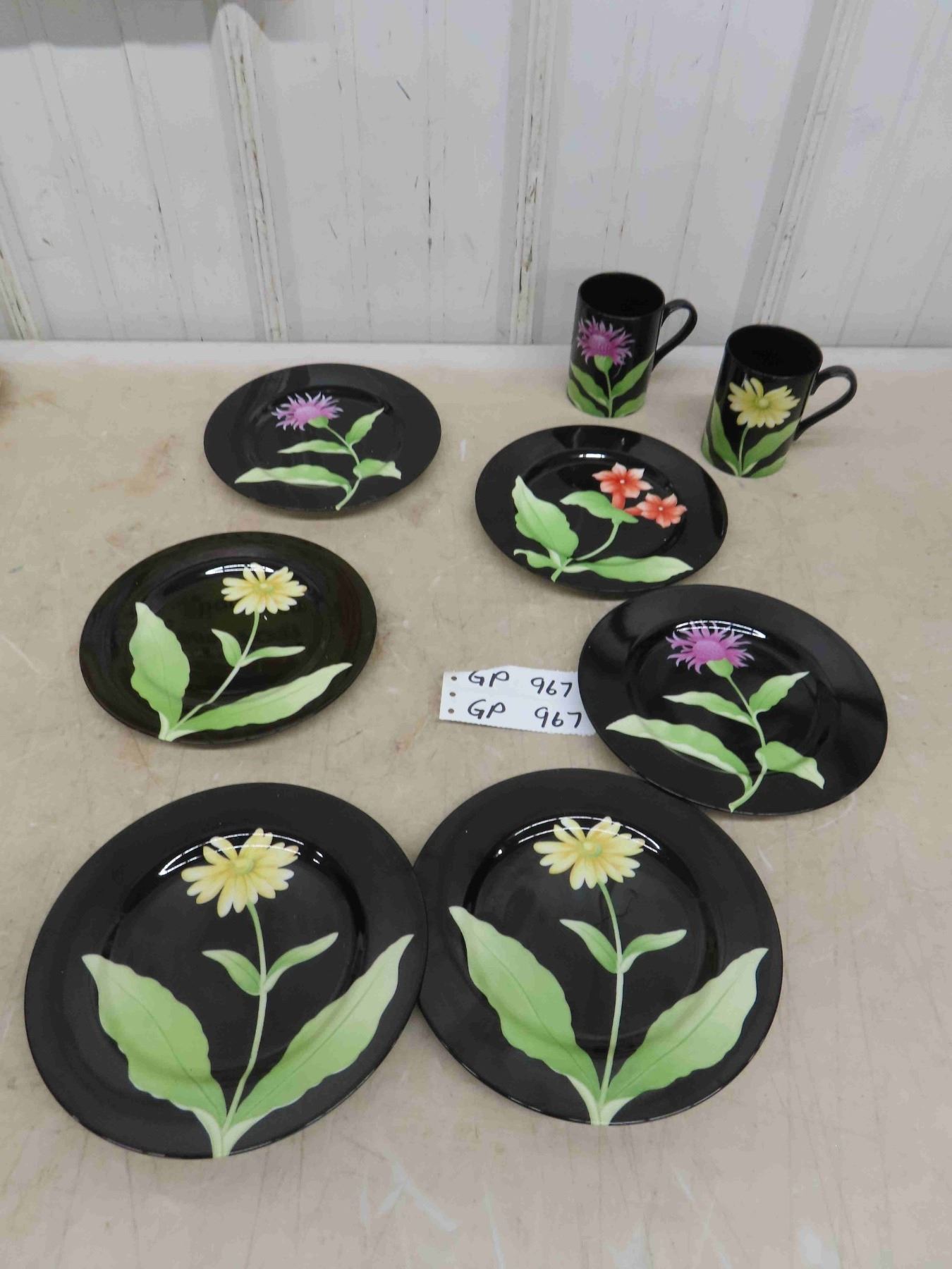 Fitz + Floyd Black Plates + 2 Mugs, 4 Espresso Cups + Saucers, 2 Fruit Plates