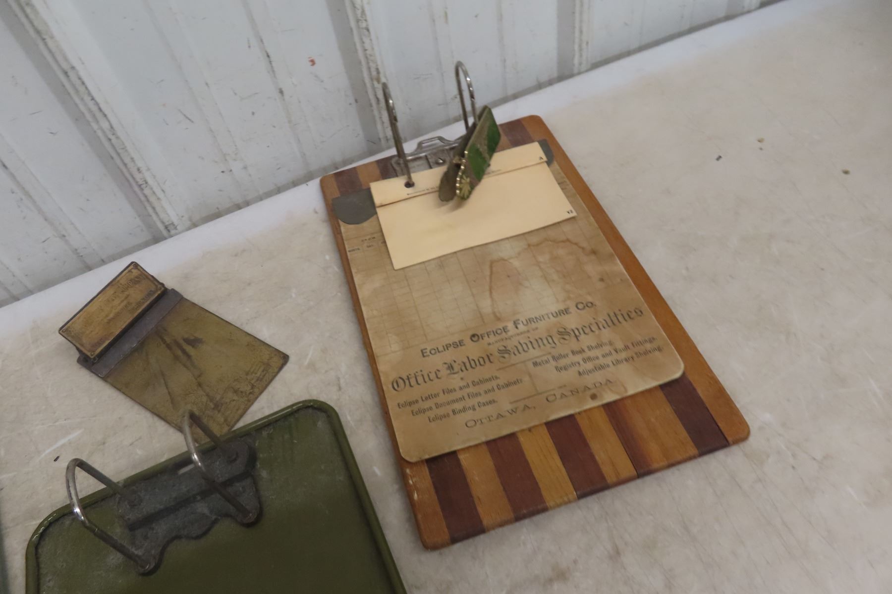 Five Antique Clipboards Including Brass Western Trust Co. Clipboard