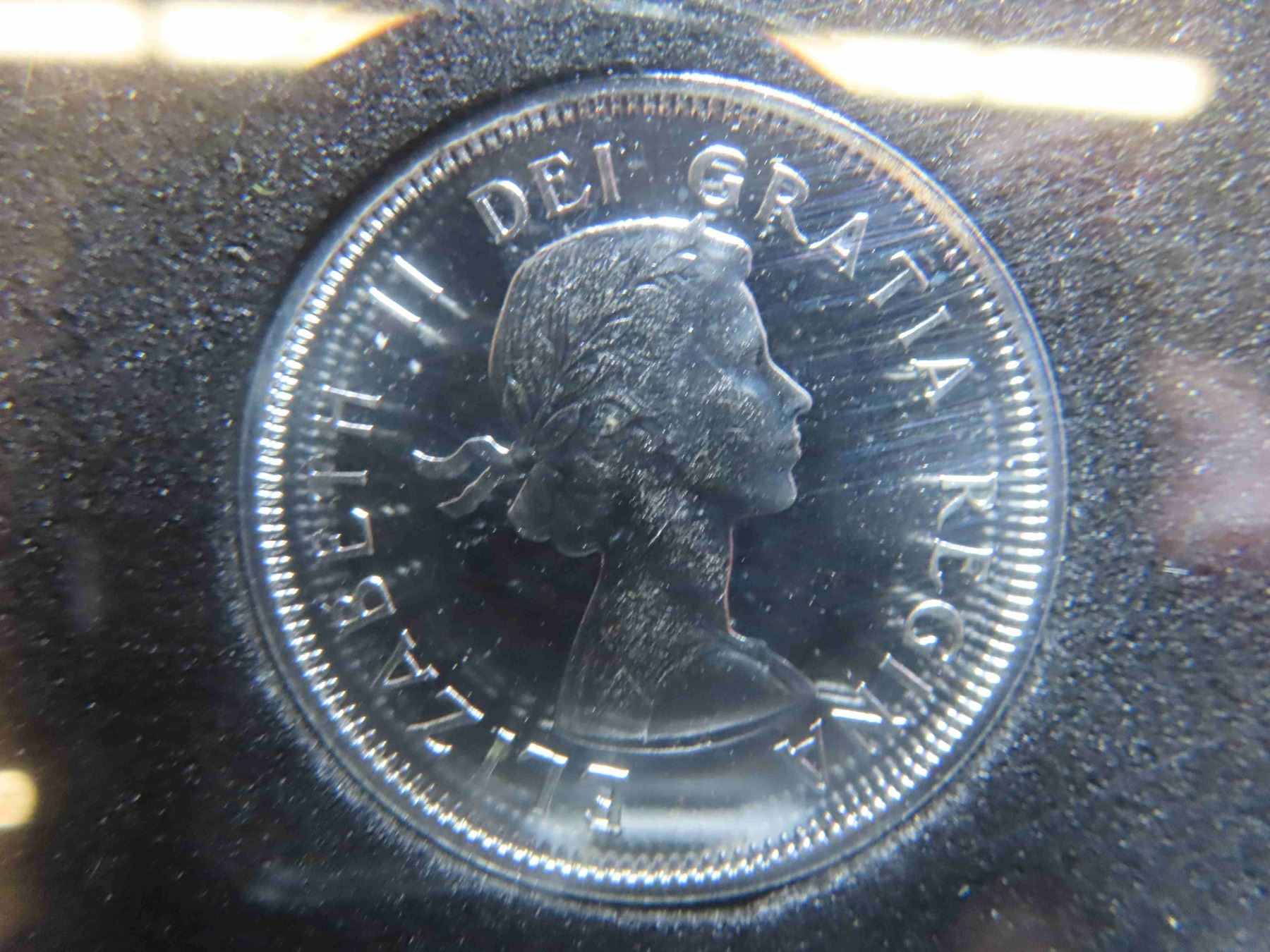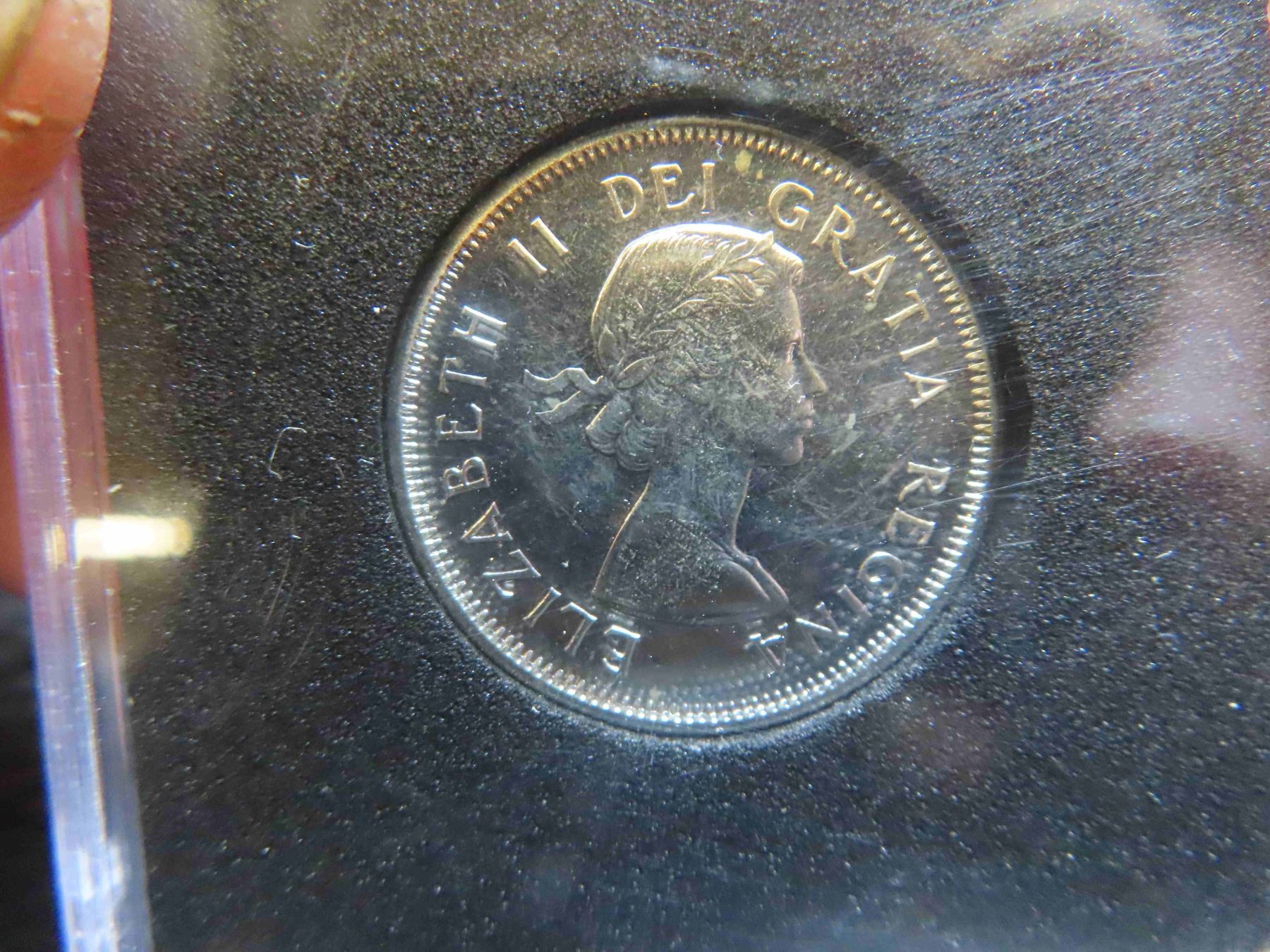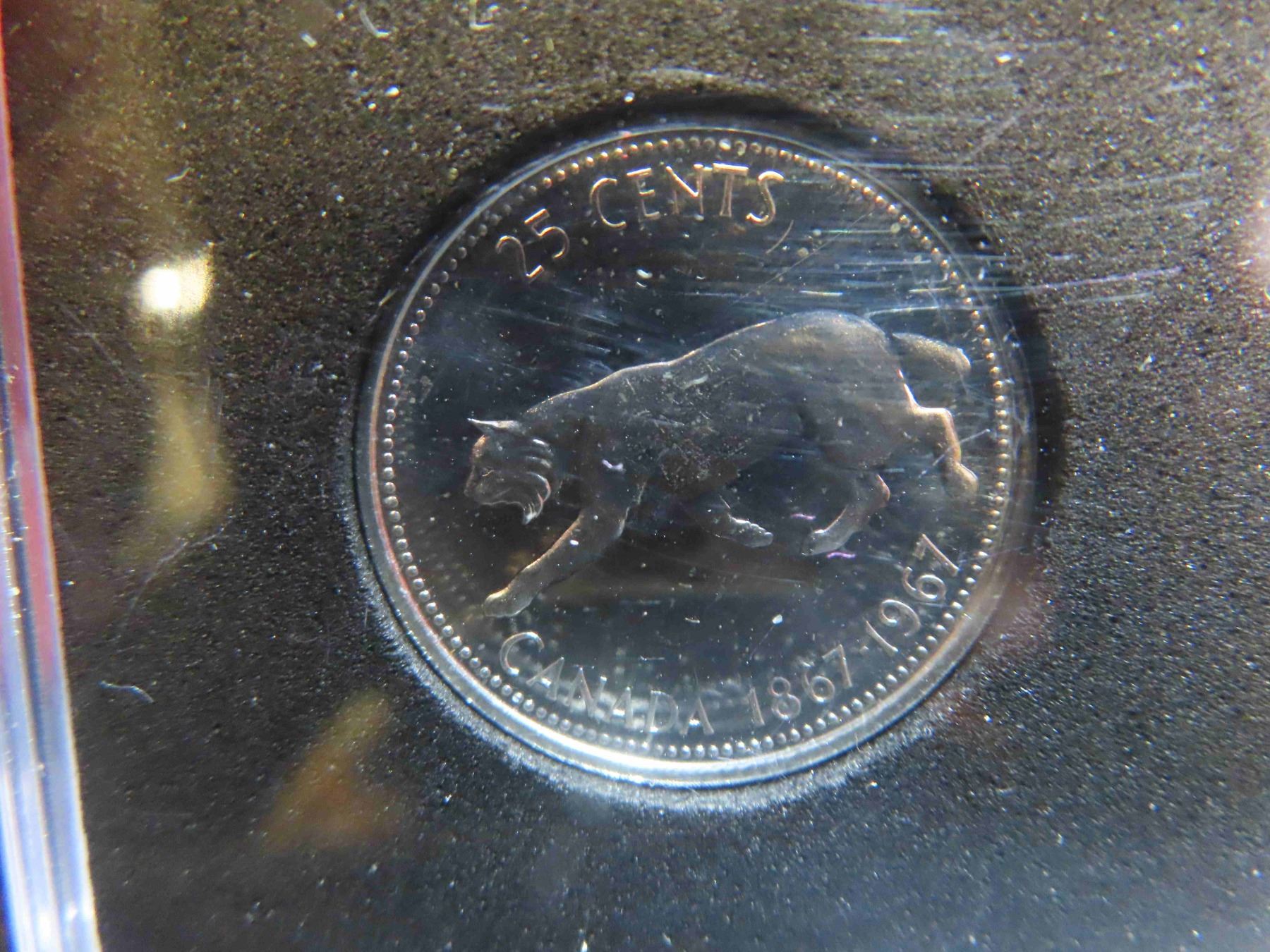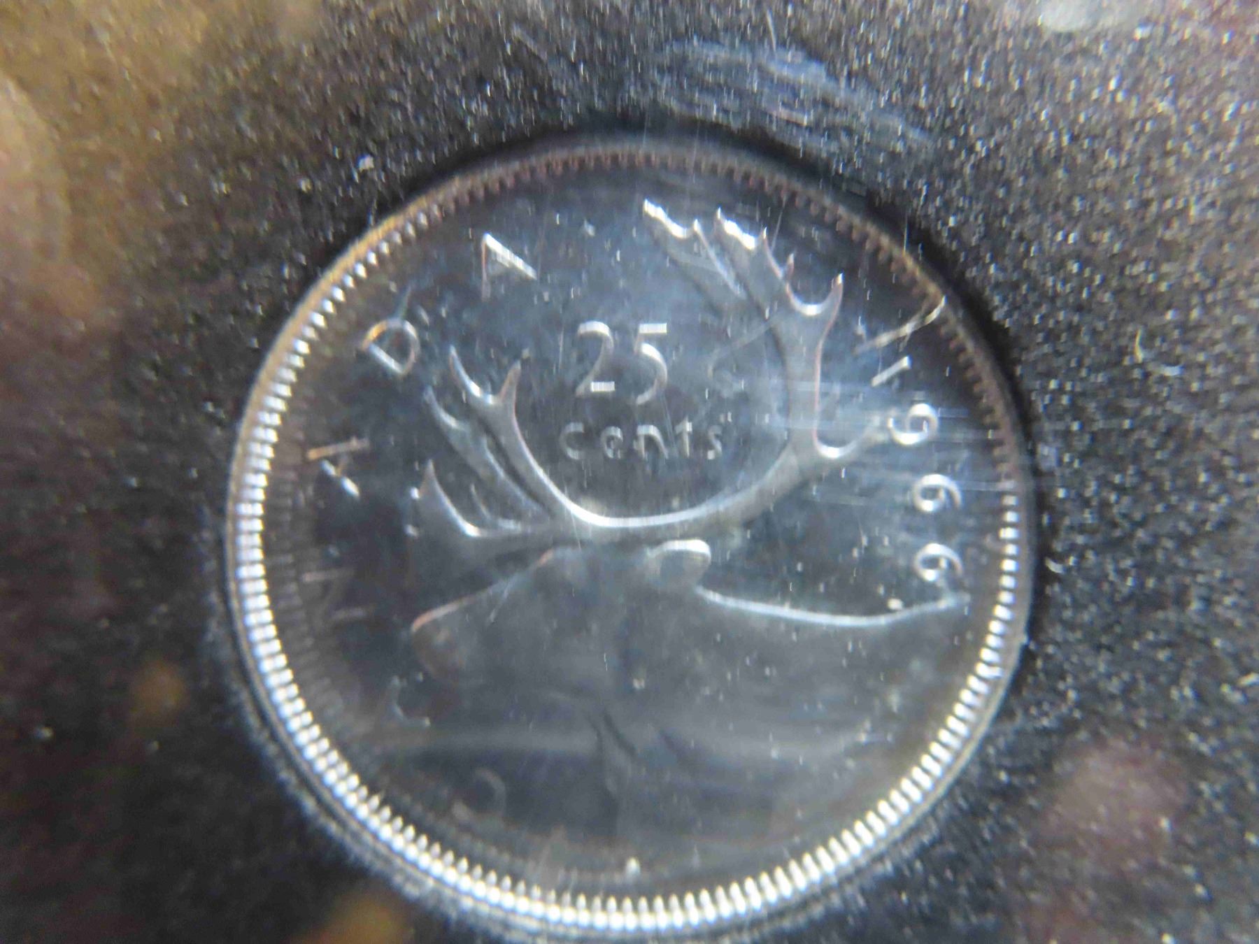 Five: Canadian 80% Silver 25 cent pieces; 1963, 1964, 1965, 1966, and 1967; all 5 coins are sealed in cases, they are untouched by any human hand, they are of the highest BU-PL-MS++ quality; unfortunately I am not a professional grader.