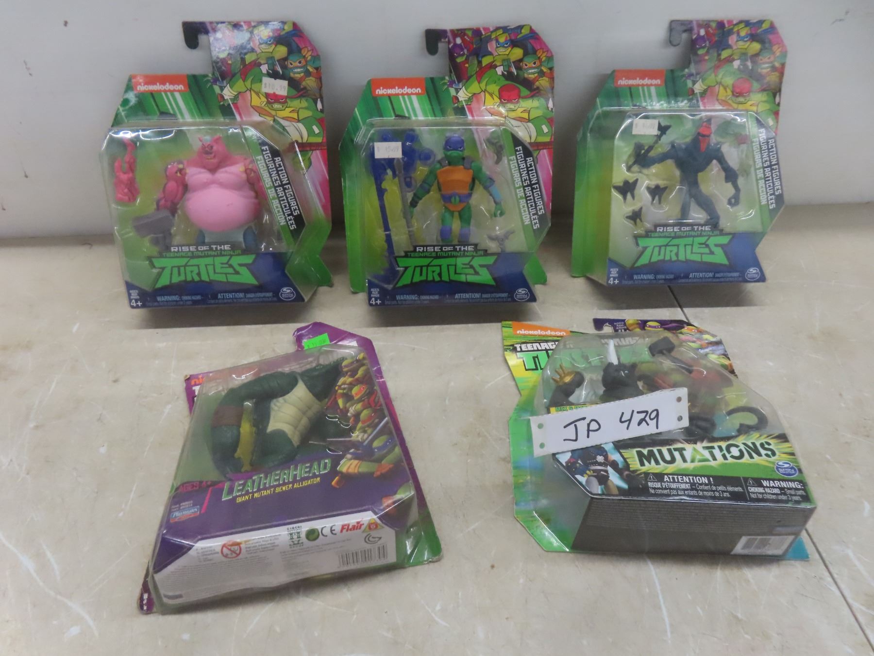 Five Factory-Sealed TMNT Figures (Rise of TMNT, Mutations, and Leatherhead)