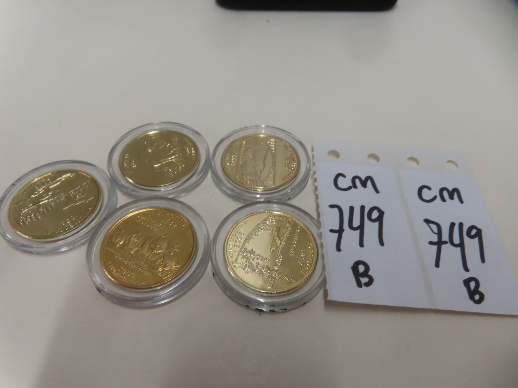 Five Gold-Plated U.S. Twenty-Five-Cent Coins