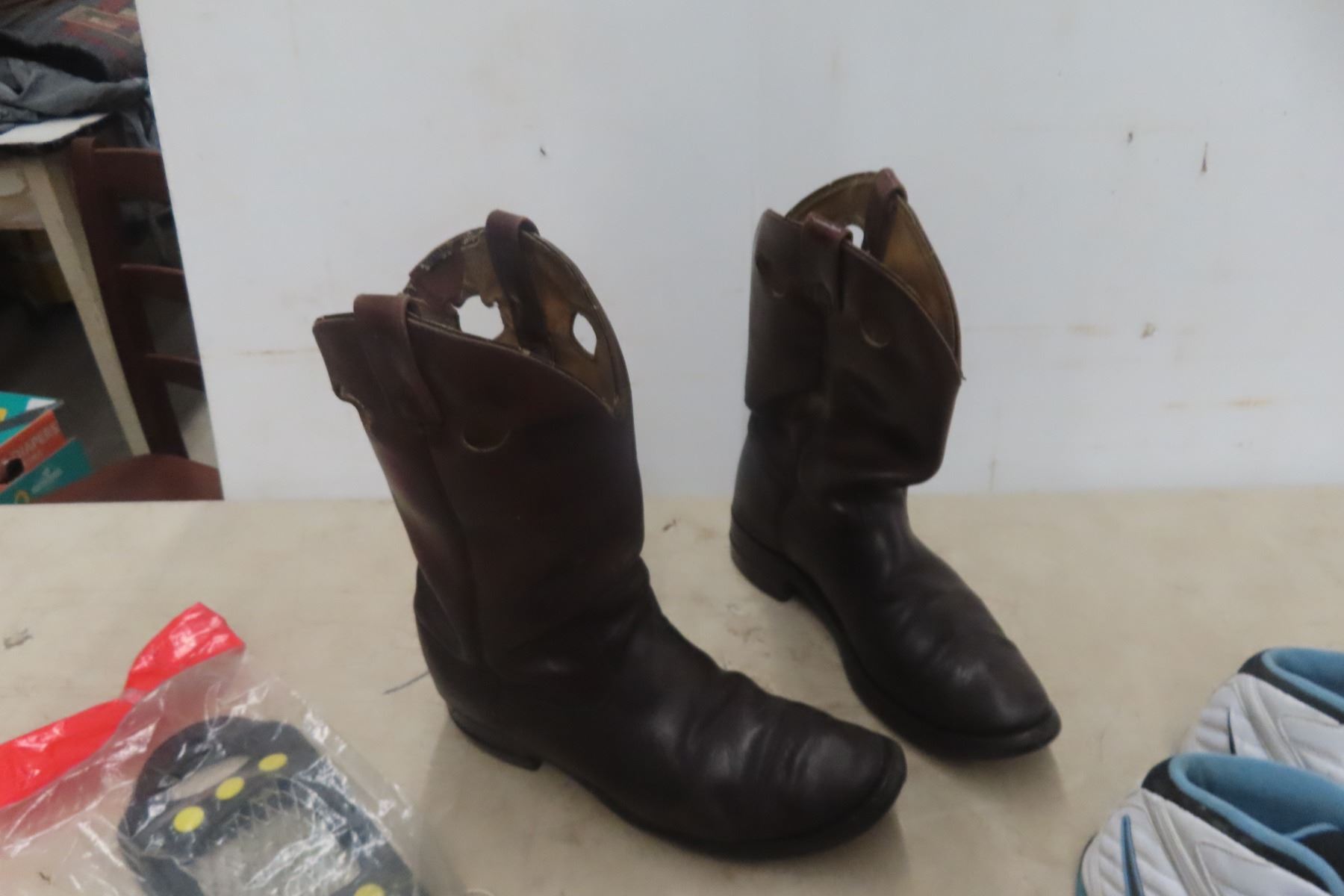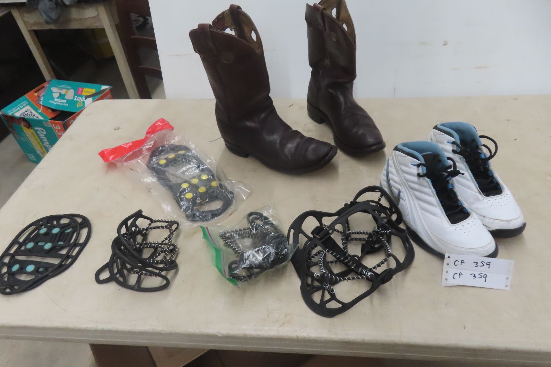 Five Pairs Slip Shoe Grips, Cowboy Boots, and Runner Size 8