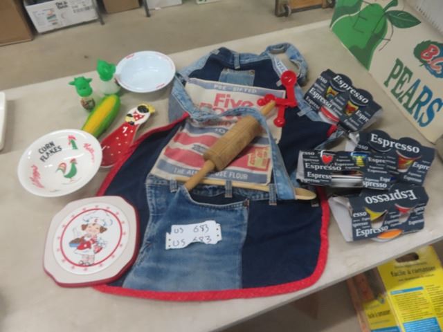 Five Roses Apron, Utensils, Rolling Pin, Kellogg's Bowl, Campbell Trivet plus more