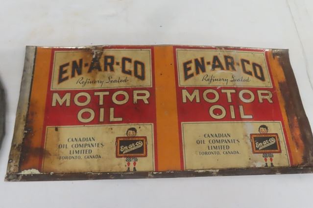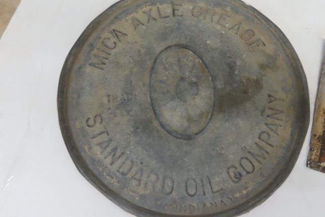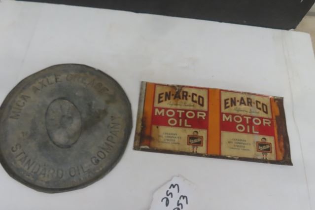 Flattened En-Ar-Co Quart Can & Standard Oil Company Grease Pail Lid Embossed - 10" Wide