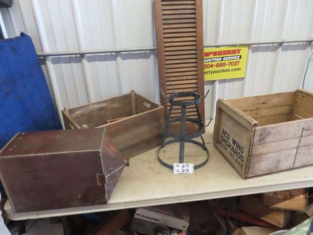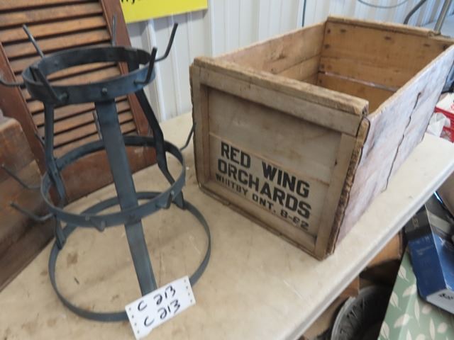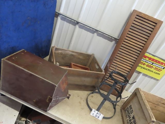 Floor Bin For Hoosier- 2 Fruit Crates, Shutter, & Metal Rack