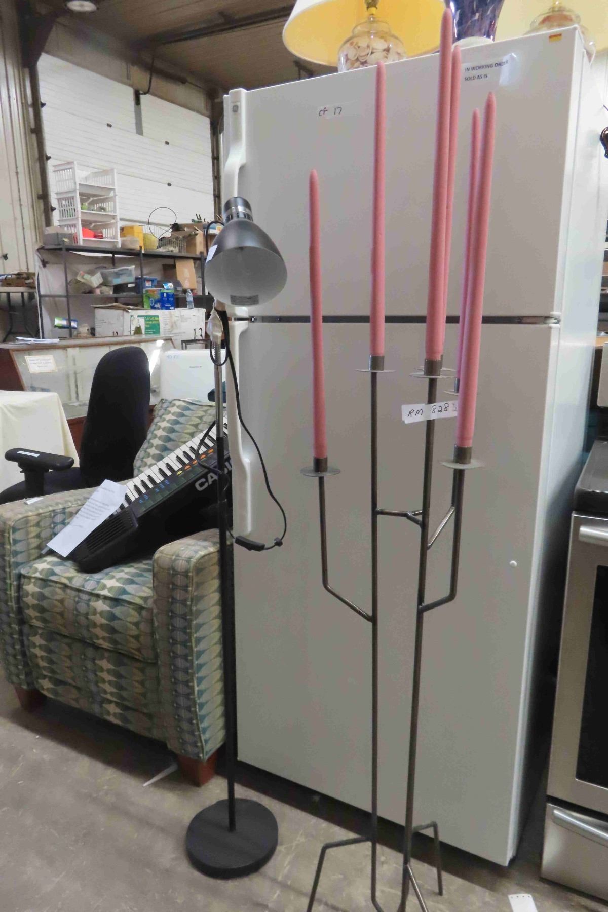 Floor Lamp 54" High with Flexible Lamp, Metal Stand with 6 Wood Carved Candles
