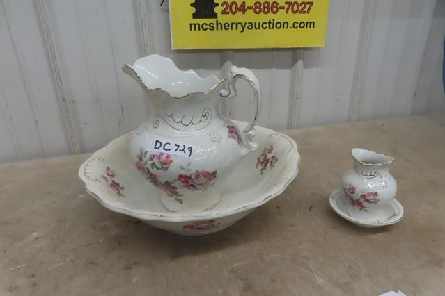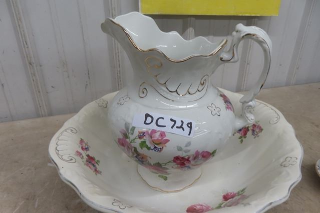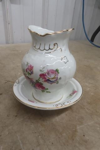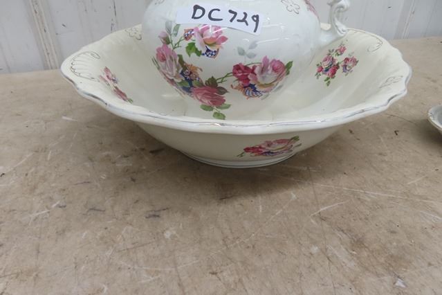 Floral Pitcher with Basin & Smaller Pitcher + Basin