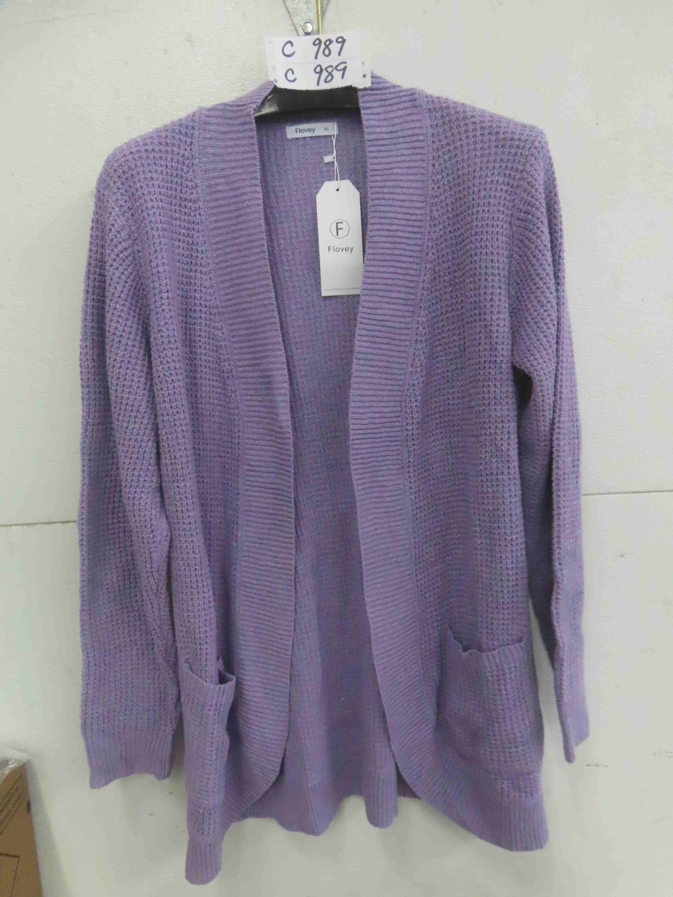 Flovey Womens Long Sleeve Open Front Cardigan Lightweight Striped Color Block Crochet Knit Outwear Sweater - New or Store Return
