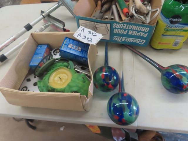 Flower Bed Tools, Plant Food, Frog Candle Holder, Glass Bulb Plant Waterer plus more